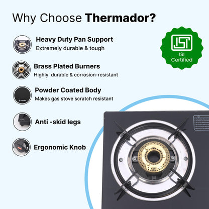 Introducing the 3 Burner Gas Stove + Gas Saver Burner by Thermador, your ultimate cooking companion for culinary adventures. This gas stove features a robust design highlighted by a 6mm toughened glass top that is not just aesthetically pleasing but also incredibly easy to clean. It comes with a durable ISI certified brass plated burner that allows for efficient cooking, enabling you to prepare multiple dishes simultaneously with ease. Enjoy the convenience of a battery-less auto ignition system, making this stove incredibly user-friendly. The gas saver burner is designed to optimize gas usage, making this gas stove a smart addition to your kitchen, especially for those who love to cook for family and friends.