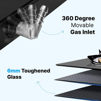 • SUPERIOR CONSTRUCTION: With 4 brass burners and 6mm toughened glass for unmatched durability, this stove also enhances your kitchen's aesthetic.