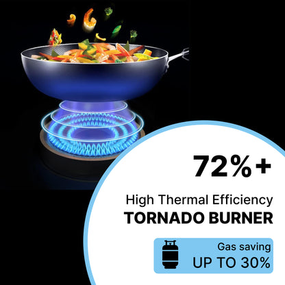 • ALUMINIUM TORNADO BURNERS: Experience fast and even cooking with specially designed burners that distribute heat uniformly.