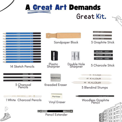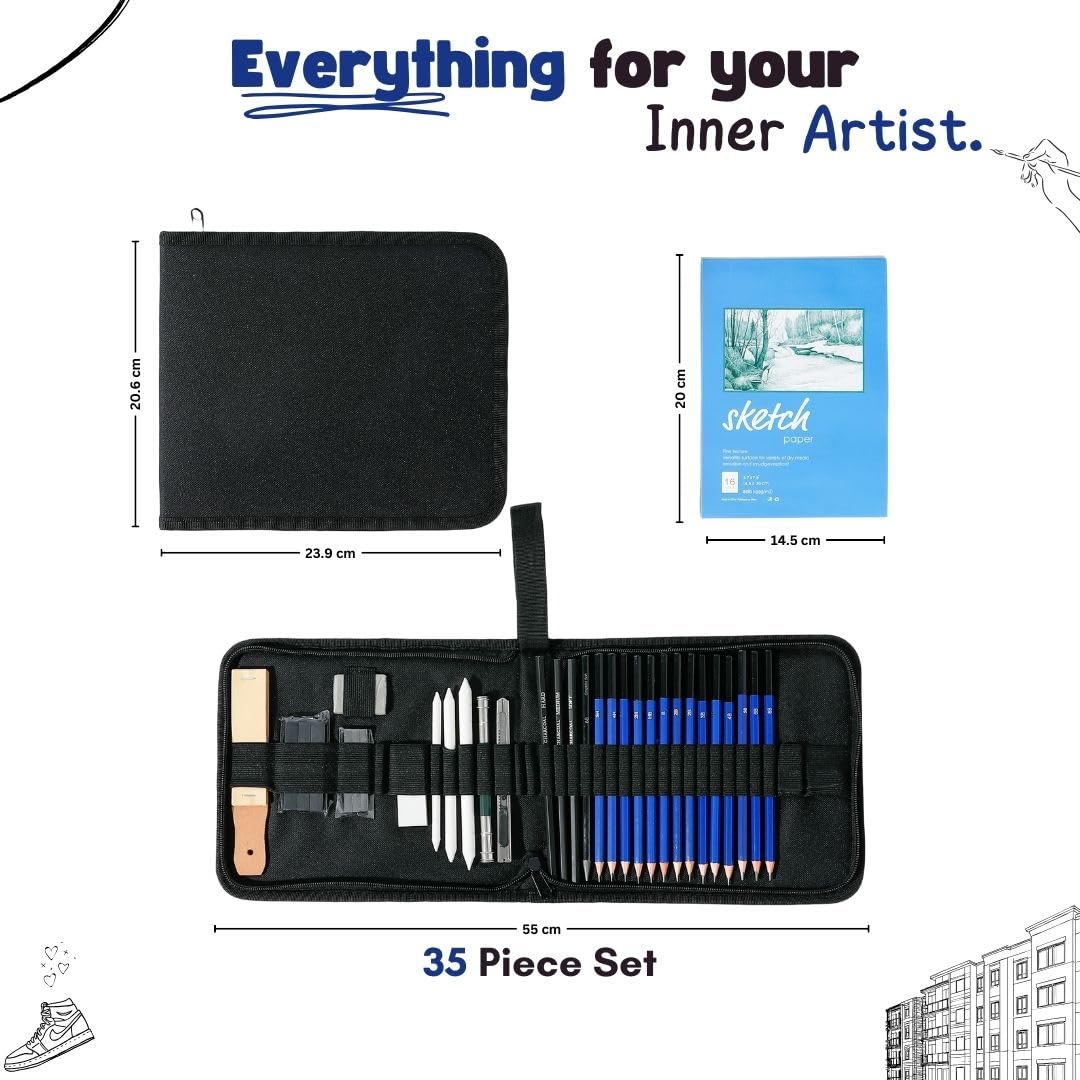 35 PC Professional Sketching Set - Complete Drawing Kit | Includes A5 Sketchbook & Carry Case