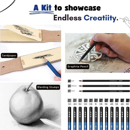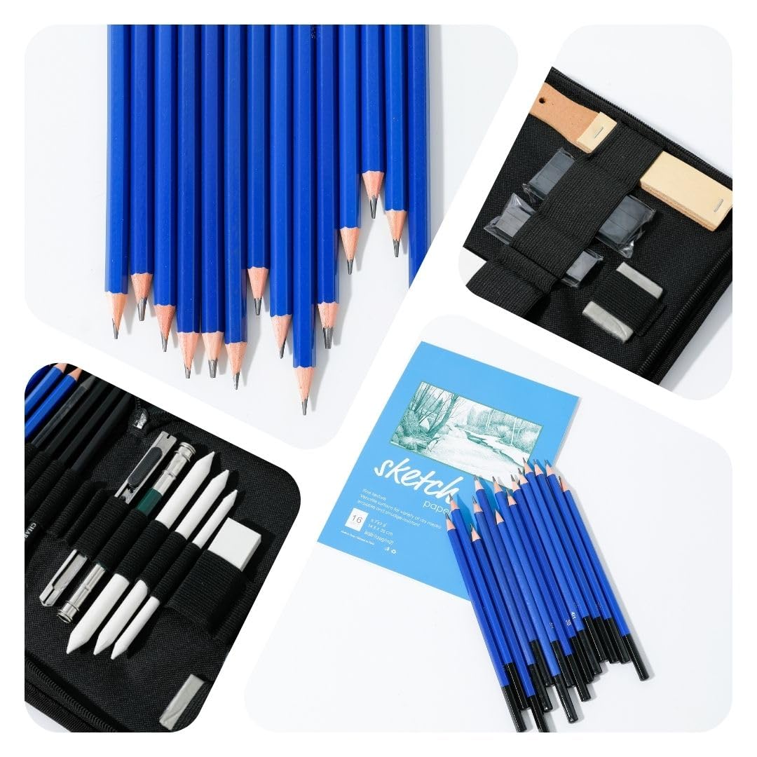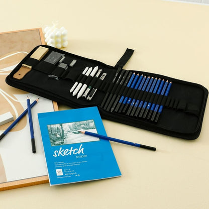 Tinker Squad 35 PC Professional Sketching Set - Complete Drawing Kit | Includes A5 Sketchbook & Carry Case