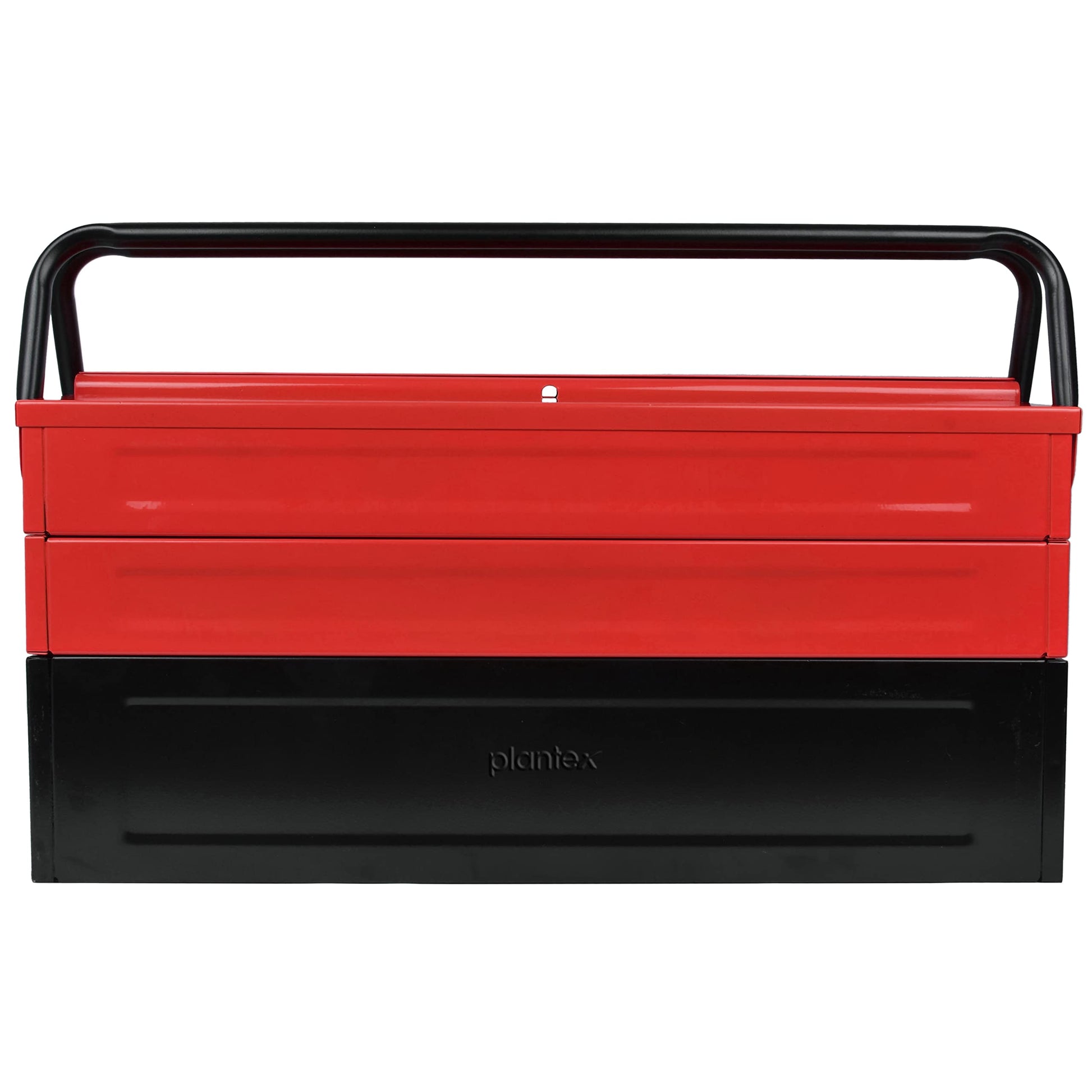 Plantex Tool Box for Home/Sturdy Tools Box With Large Capacity/Empty Tool Box/Tool Organizer for Carpenter, Garage, And Home Essential Tools - 5 Compartments - (Red & Black) - Metal