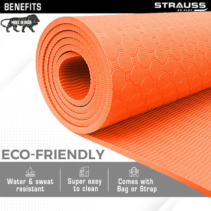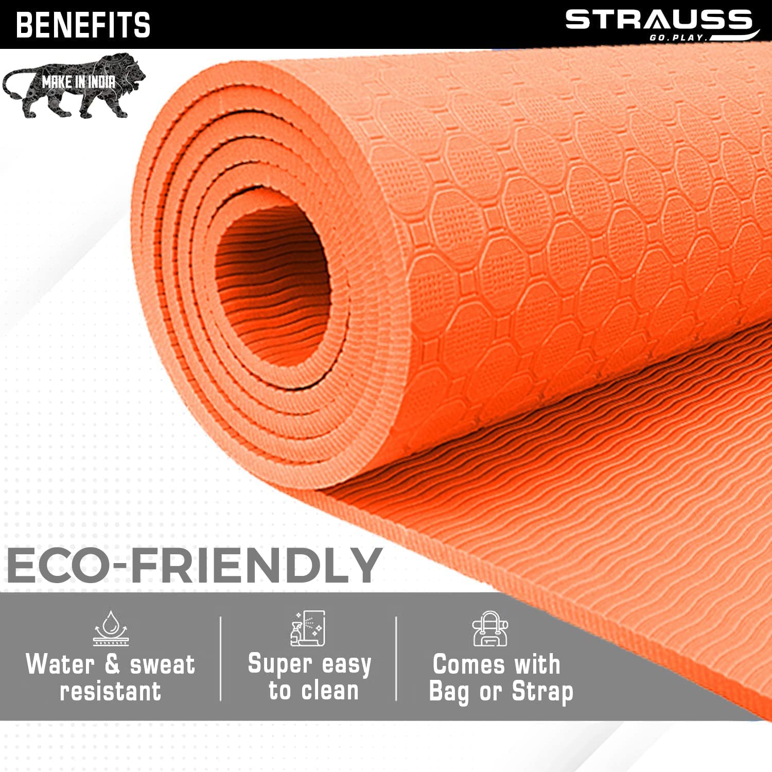 STRAUSS Etra Thick Yoga Mat| Exercise Mat for Yoga,Pilates & Gym| Lightweight & Eco-Friendly Material | Yoga Mat for Women and Men |Ideal for Home Gym Workout |Includes Carry Strap | 13MM,(Black)