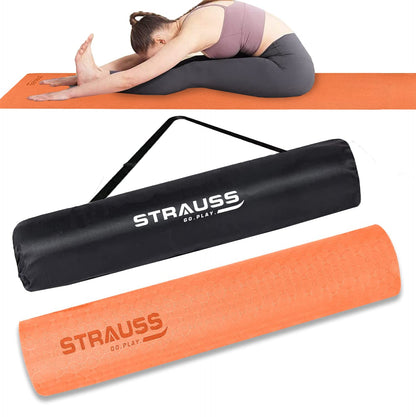 STRAUSS EVA Yoga Mat with Carry Bag | Non-Slip Exercise Mat for Home & Gym | Eco-Friendly, Lightweight & Durable Workout Mat | Ideal for Yoga, Pilates, Fitness | Ideal for Men & Women,4mm,(Grey)