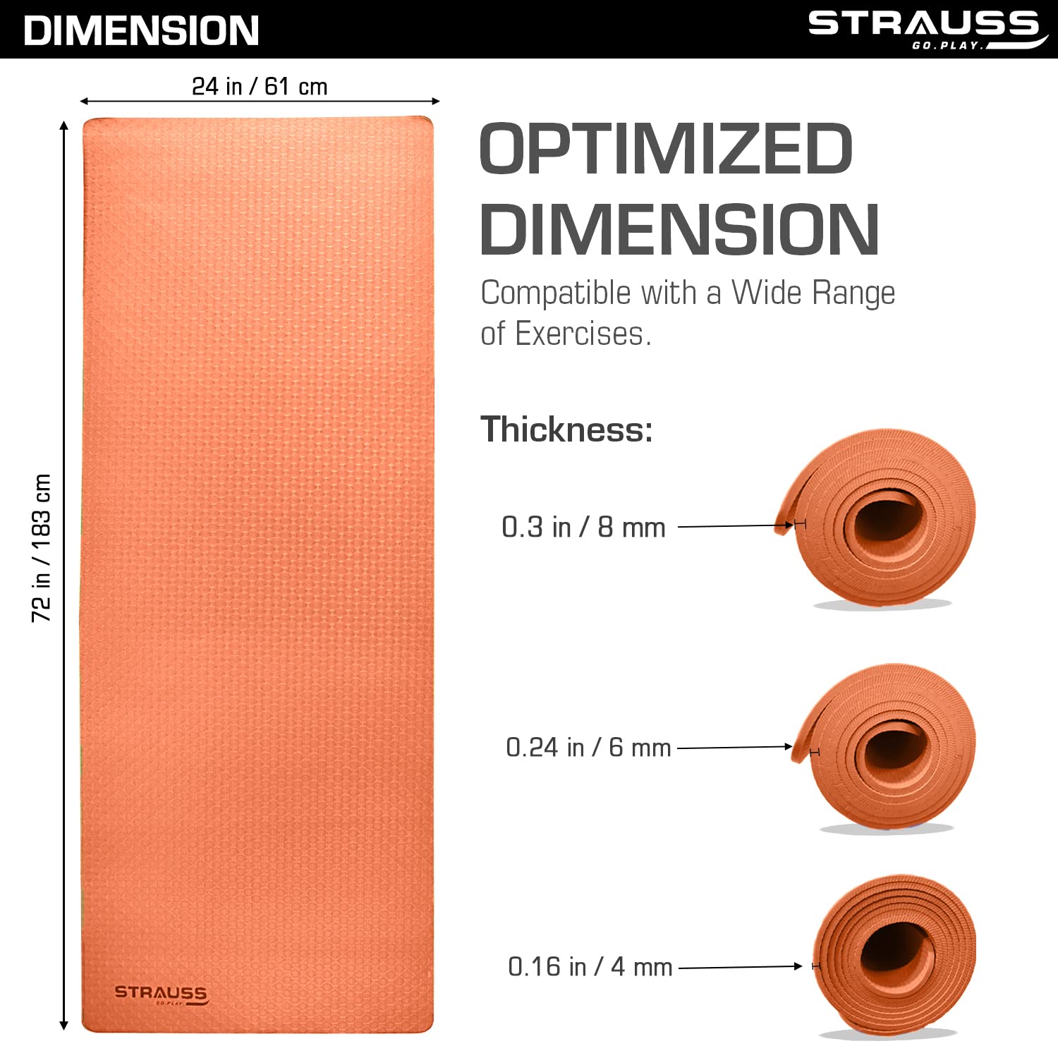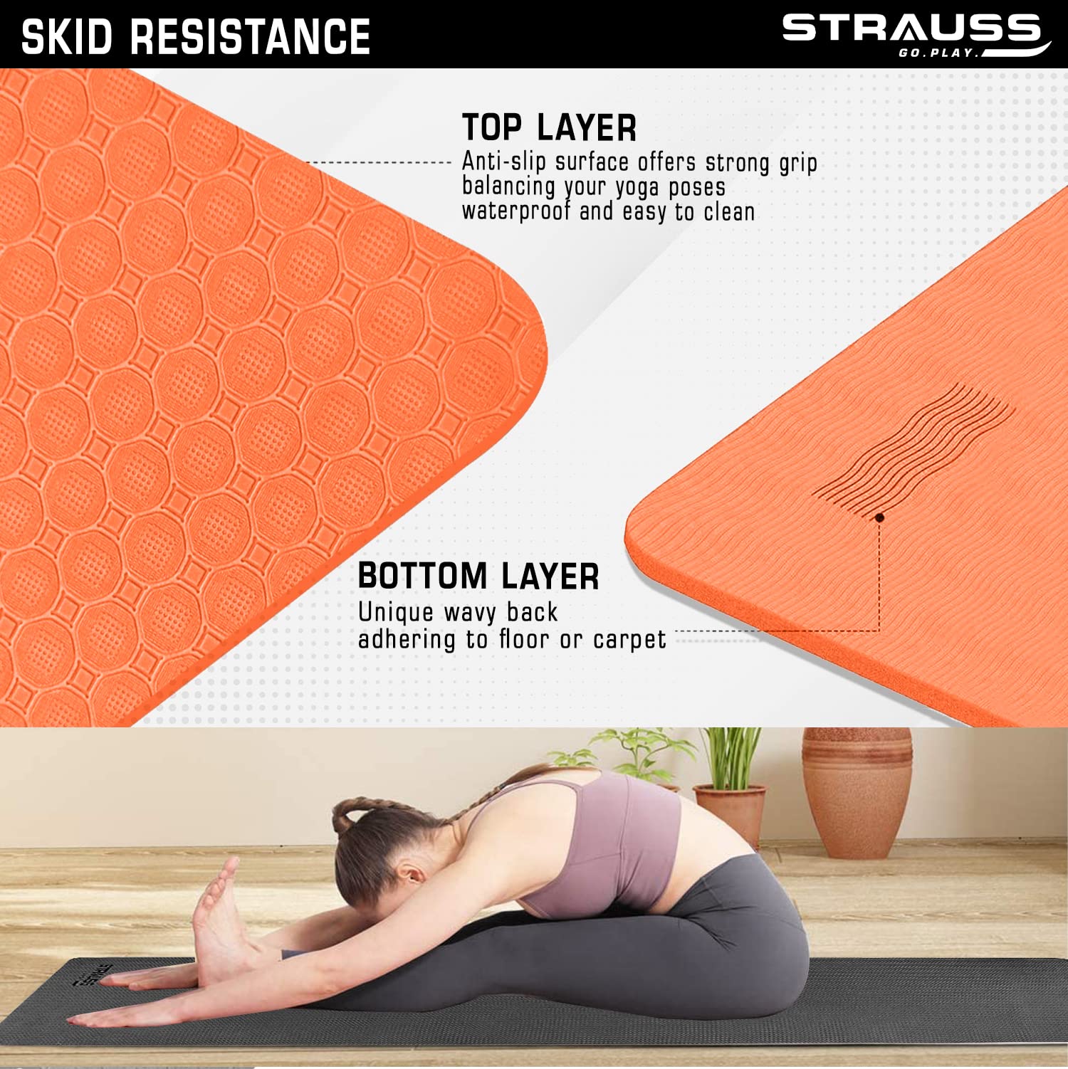 STRAUSS TPE Dual Layer Yoga Mat| Exercise Mat for Yoga,Pilates & Gym| Lightweight & Eco-Friendly Material | Yoga Mat for Women and Men |Ideal for Home Gym Workout |Includes Carry Bag | 4MM,(Grey)