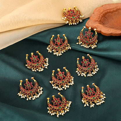 Introducing the Yellow Chimes Choti Jadai Billai Traditional Multicolor Bridal Hair Accessories, your go-to embellishment for weddings and special occasions. This exquisite piece boasts a stunning pearl-embellished design, guaranteed to add a touch of elegance and sophistication to your ensemble. The accessories are crafted with metal material, featuring a beautiful floral pattern in the vibrant Gold-2 color, making it an ideal choice for brides seeking to enhance their bridal attire.