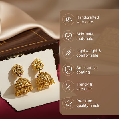 - MATCHING JHUMKAS: Comes with coordinated jhumka earrings featuring carved patterns and bead hangings.