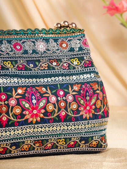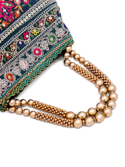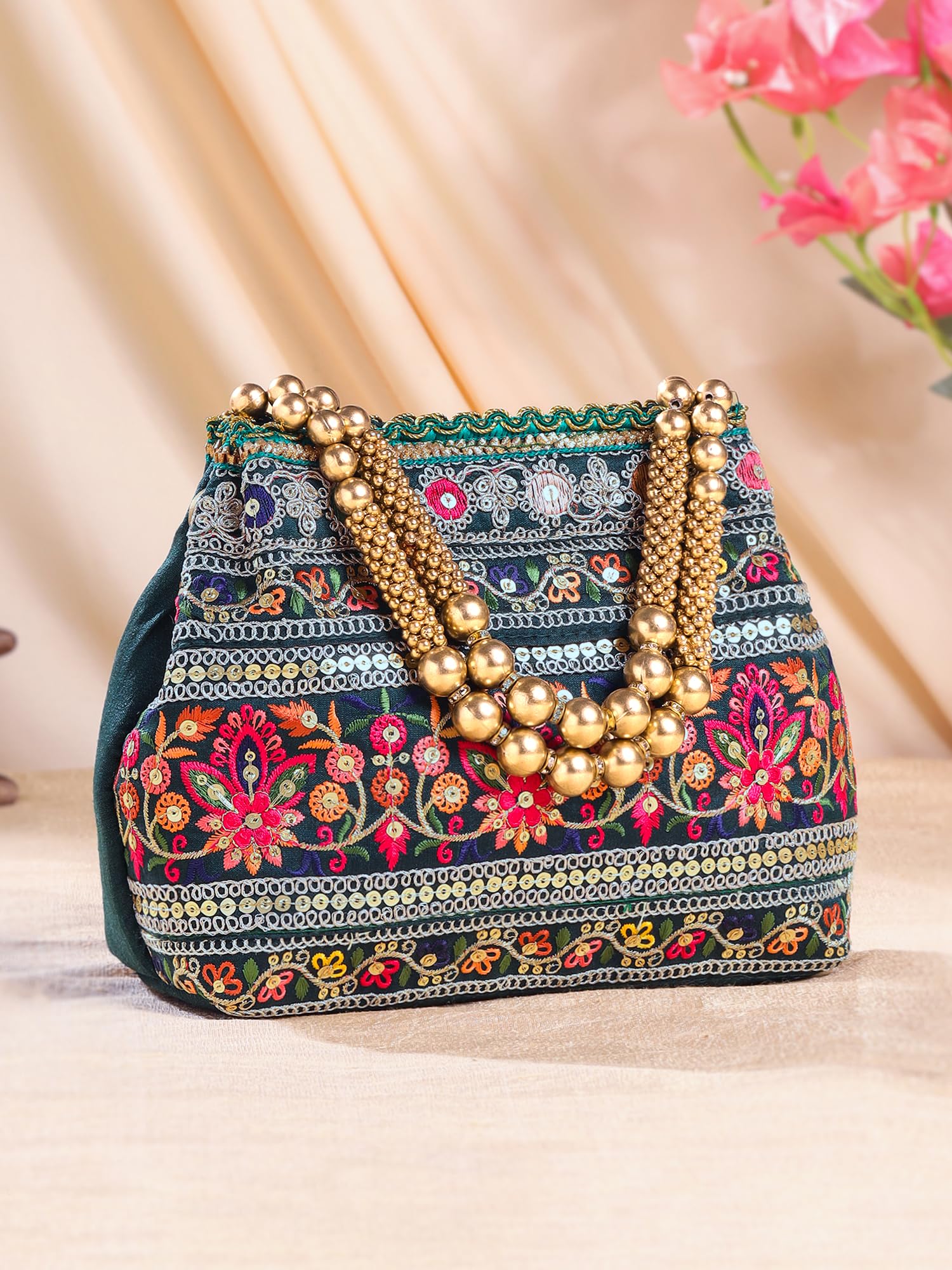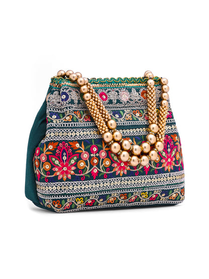 Potli Bags For Ladies For Wedding | Traditional Potli Handbags For Women | Pearl Beaded Wristlet Handmade Embroidery Worked Potli Bag | Ideal for Parties Weddings or Traditional Events