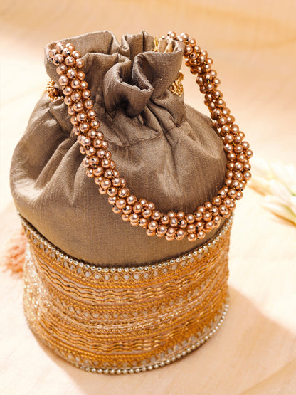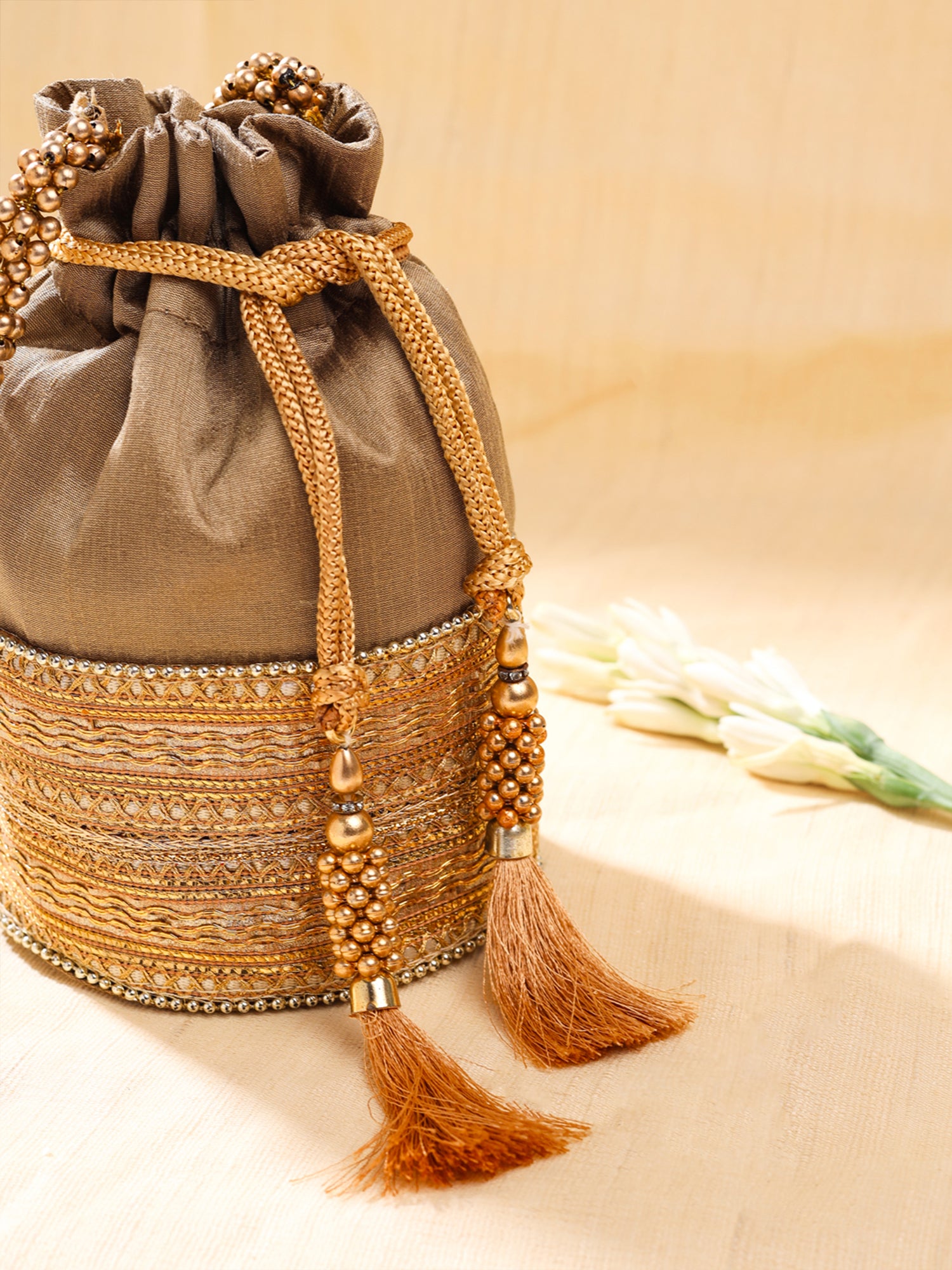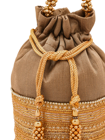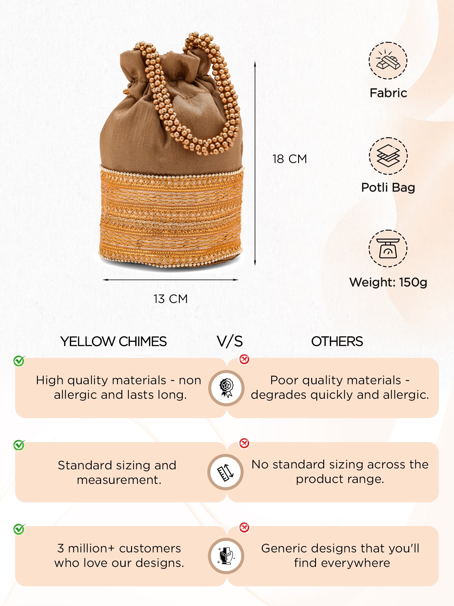 Yellow Chimes Potli Bags for Ladies for Wedding | Traditional Potli Handbags for Women | Beaded Wristlet Handmade Embroidery Worked Potli Bag | Ideal for Parties Weddings or Traditional Events
