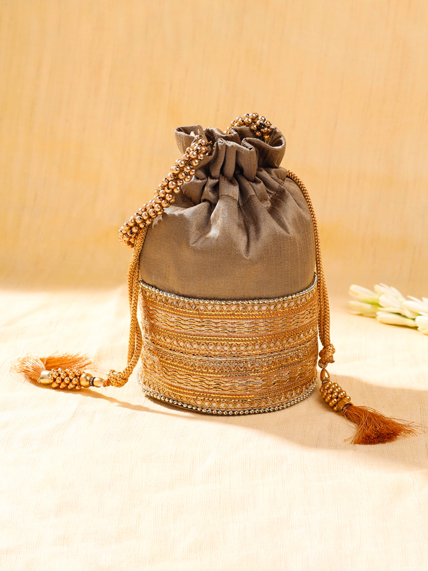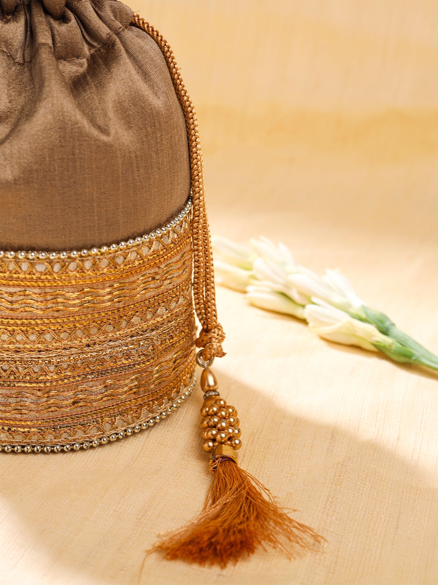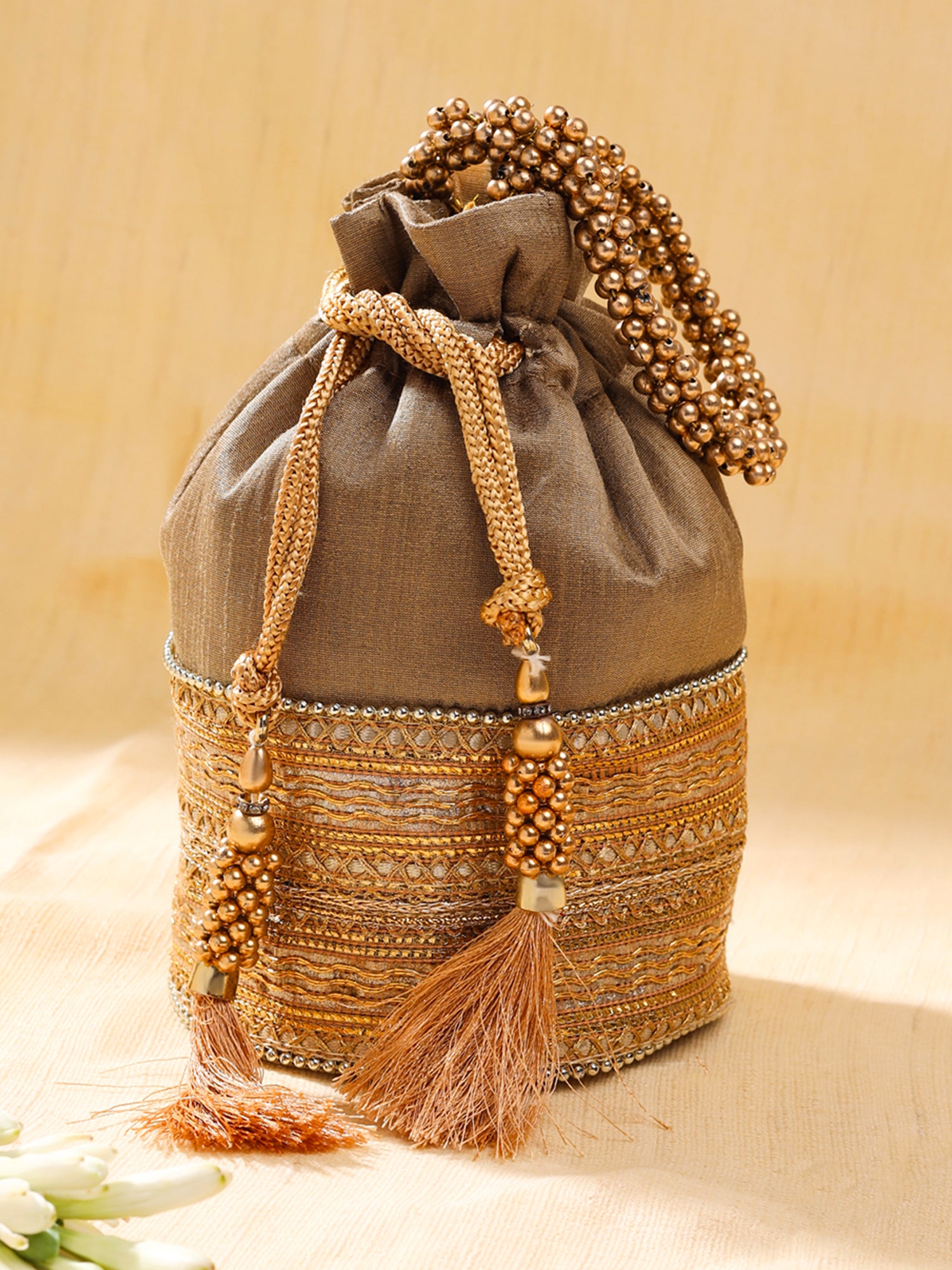 Yellow Chimes Potli Bags for Ladies for Wedding | Traditional Potli Handbags for Women | Beaded Wristlet Handmade Embroidery Worked Potli Bag | Ideal for Parties Weddings or Traditional Events