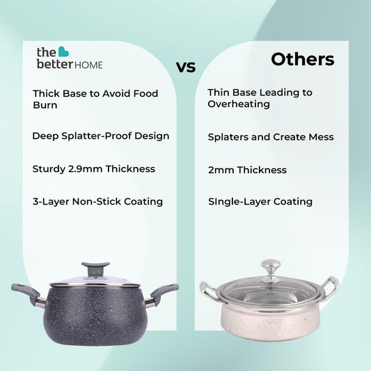 Non Stick Handi with Lid (5L) | Big Biryani Handi| Gas Stove Cookware | Durable, Non-Toxic | Easy Grip Handle | Heat Surround Cooking | Large Tope for Cooking|Handi Pot