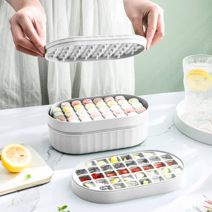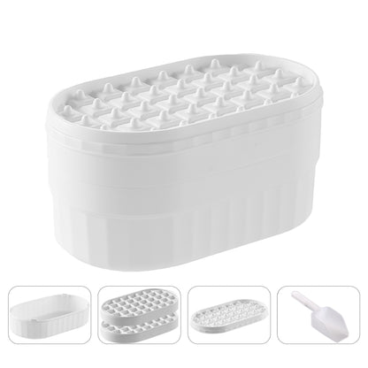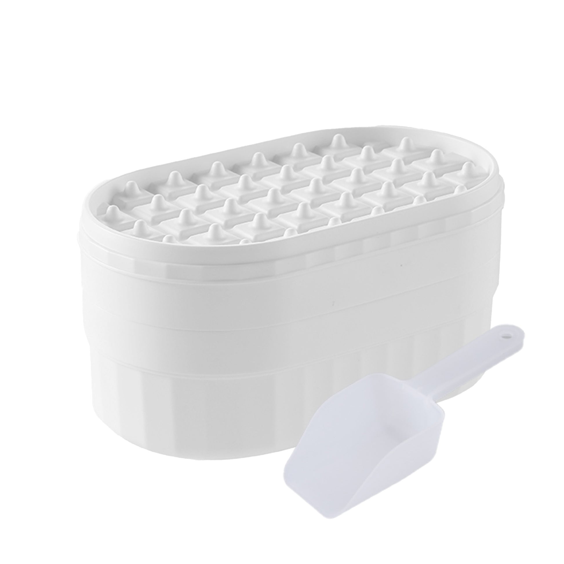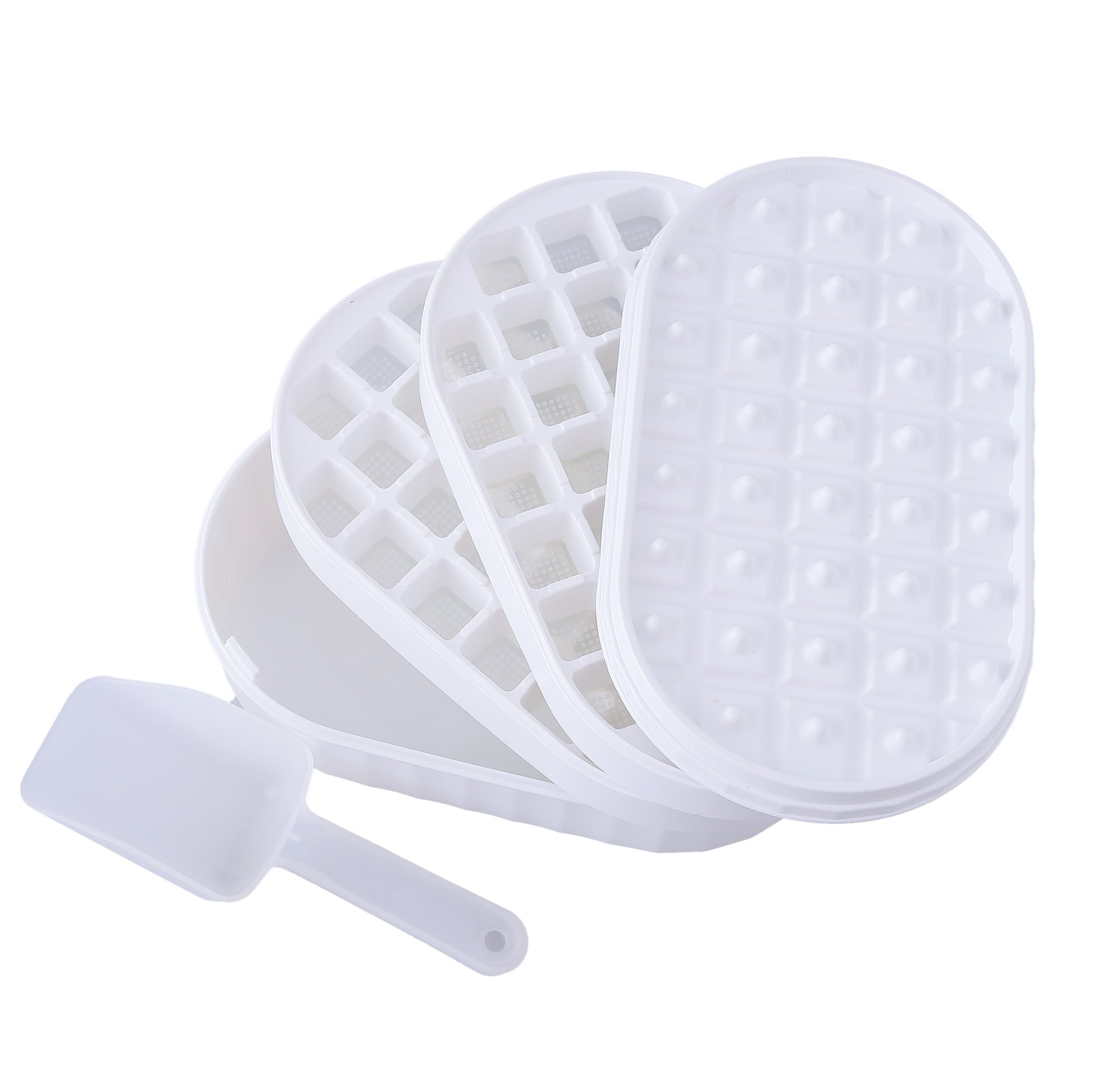 2 Layer Ice Cube Trays: 72 Compartments with Lid & Ice Scoop | White