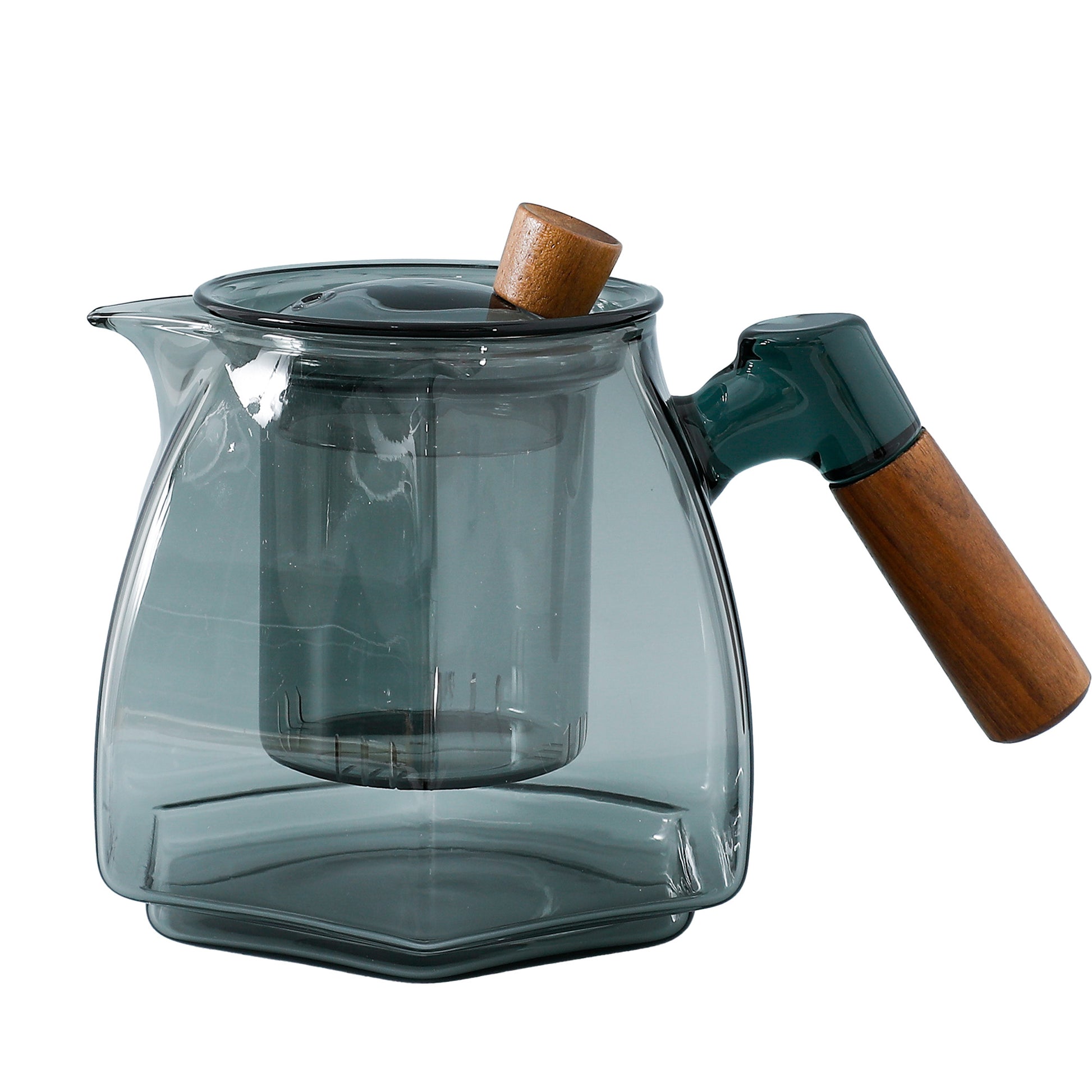 UMAI 650ml: Stovetop Safe Glass Tea Kettle with Bamboo Handle & Lid | Grey