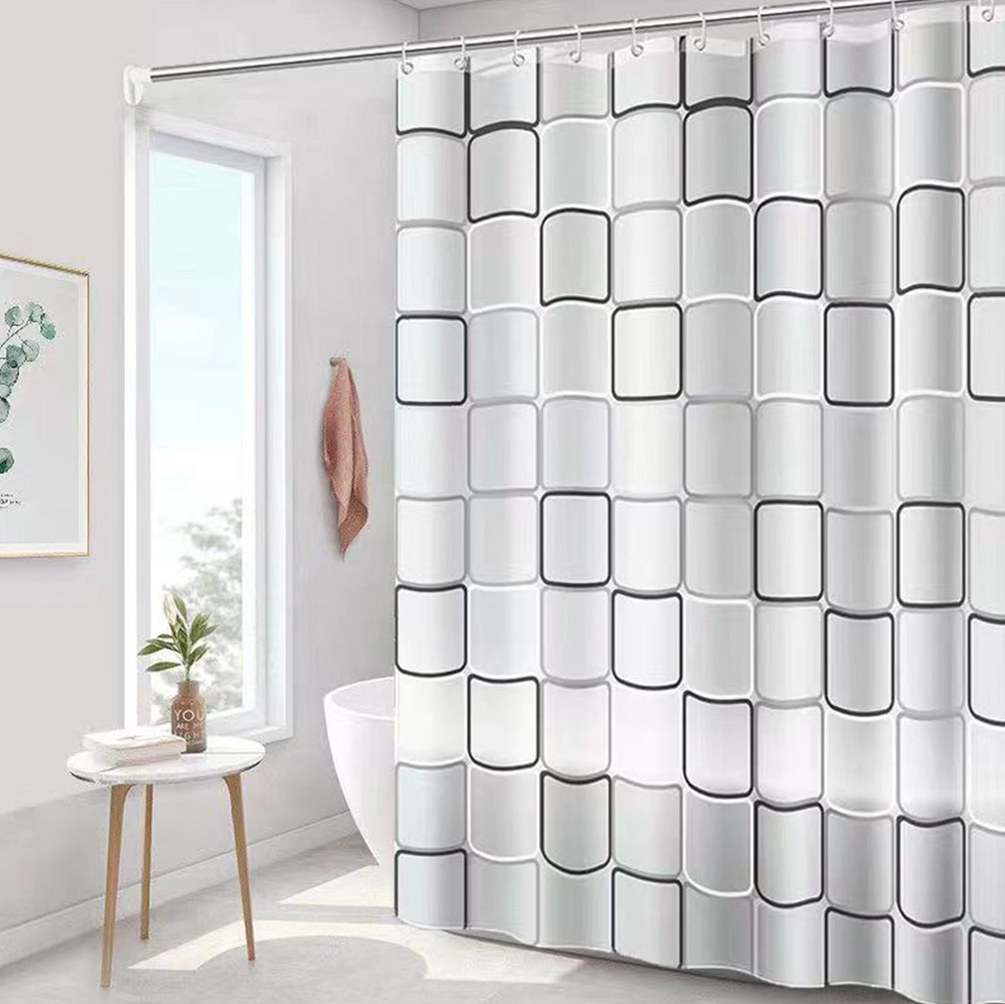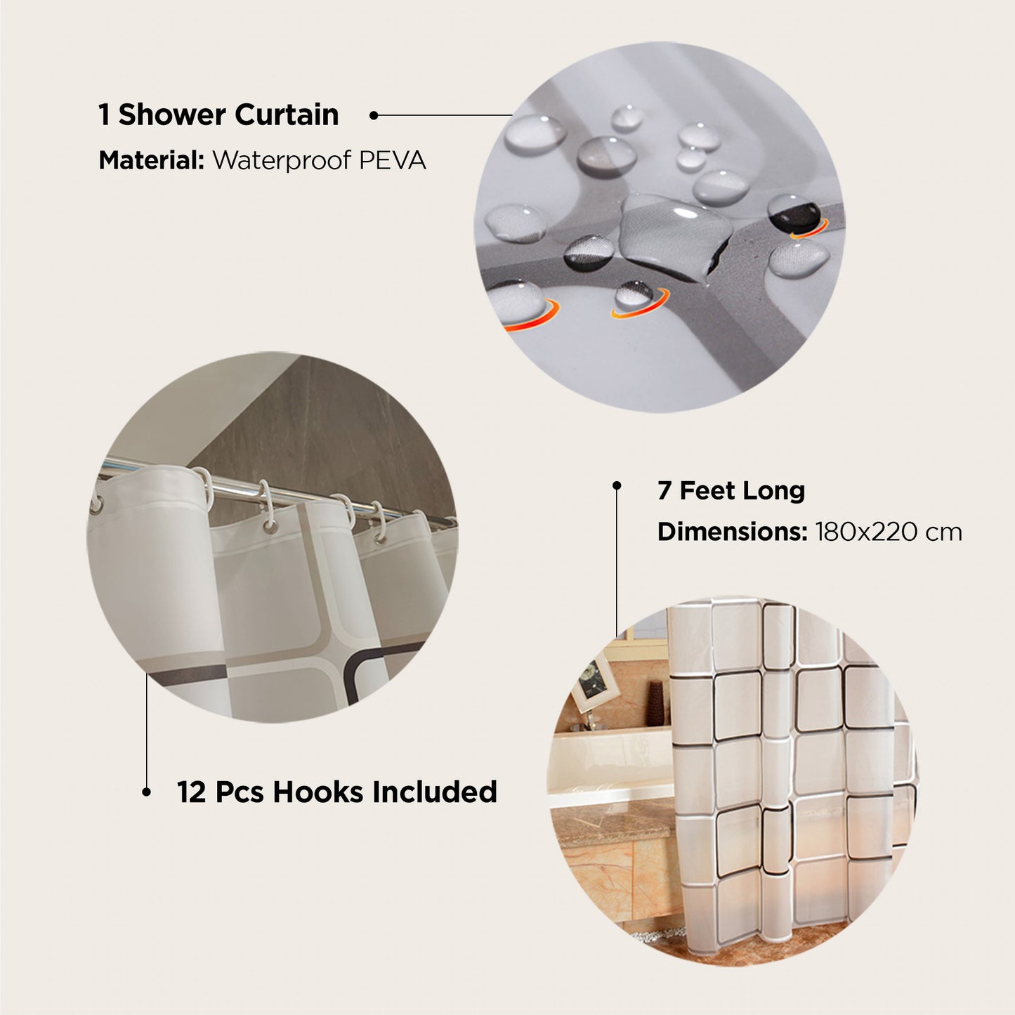7 Feet PEVA Shower Curtain I Black and White Checked Print I 180 X 220cm I 12 Pcs Hooks Included I Quick Dry I Waterproof I Easy-Slide Curtains I Bath Decor I Multicolour