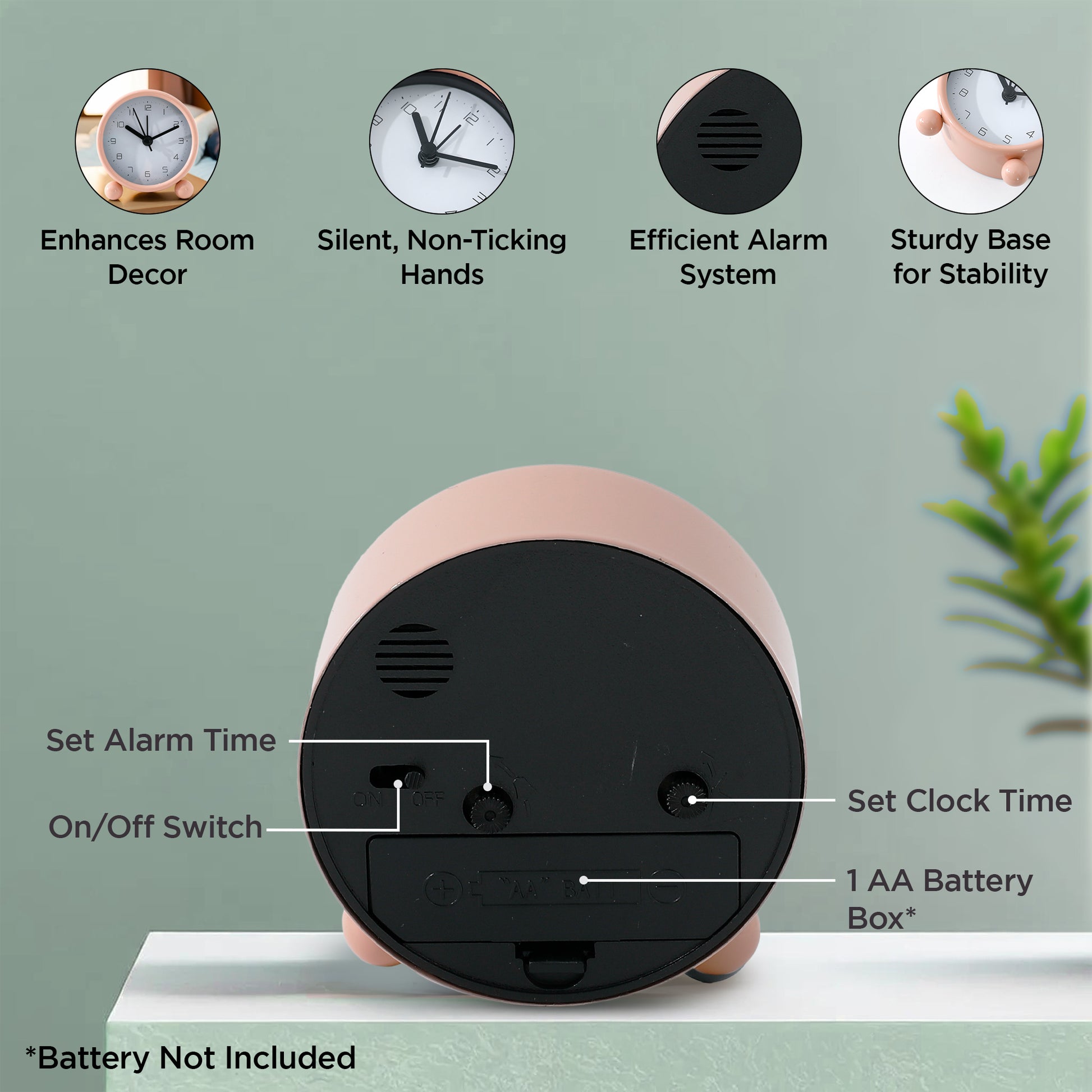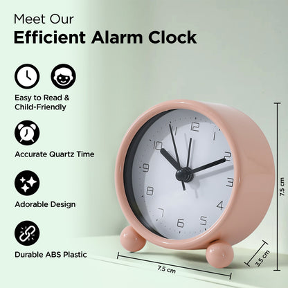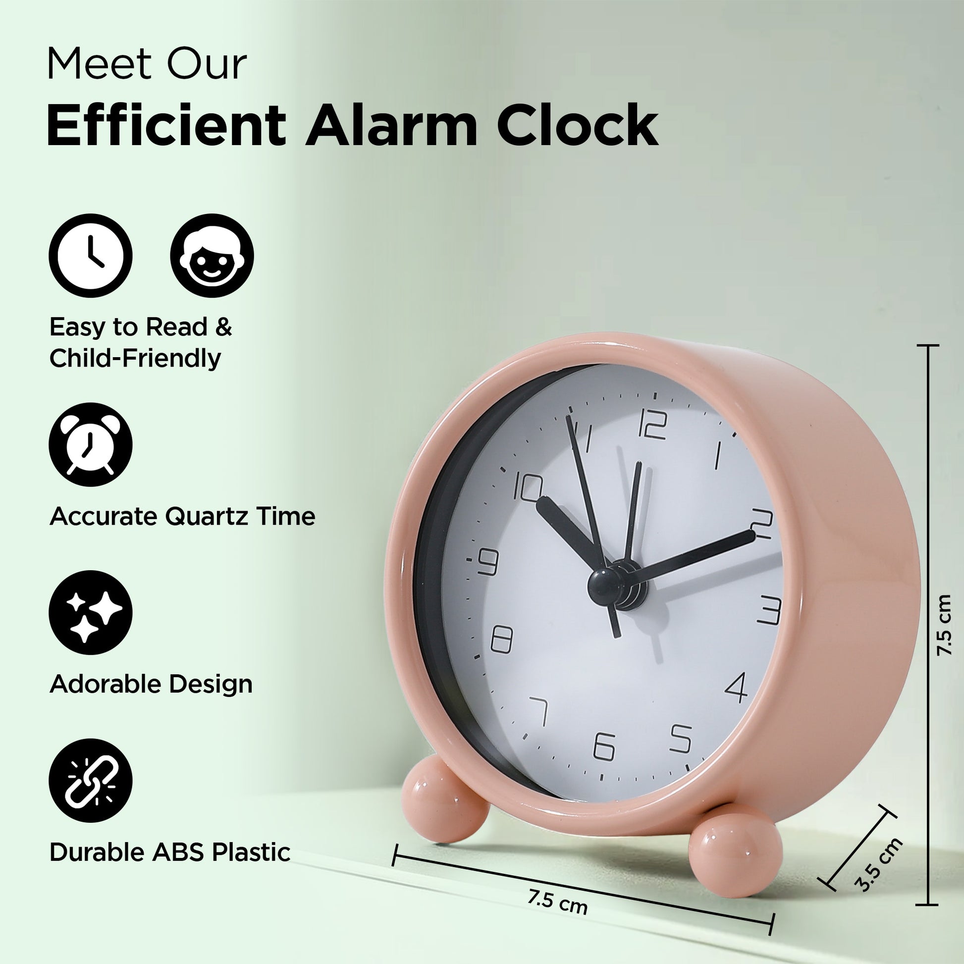 Alarm Clock (7.5cm) | Alarm Clock for Students | Loud Alarm Clock for Heavy Sleepers | Mini Alarm Clock for Kids | Alarm Clock for Bedroom | Round Shaped Table Clock for Study Table -Light Brown