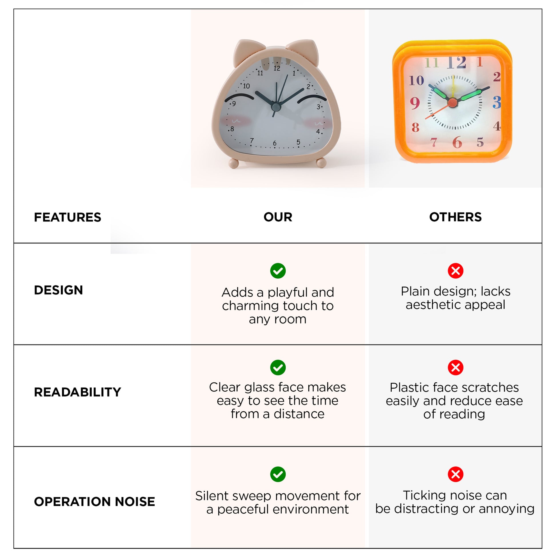 UMAI Alarm Clock (10cm) |Alarm Clock for Students |Loud Alarm Clock for Heavy Sleepers |Mini Alarm Clock for Kids |Alarm Clock for Bedroom | Cat Ears Table Clock for Study Table - Light Brown