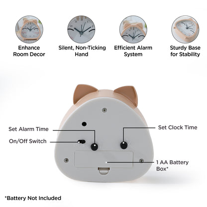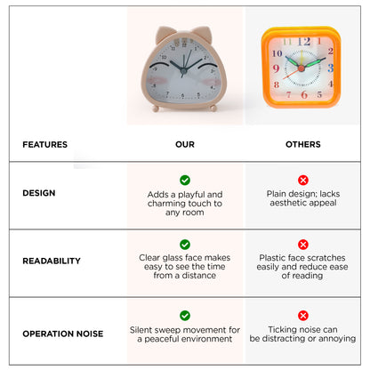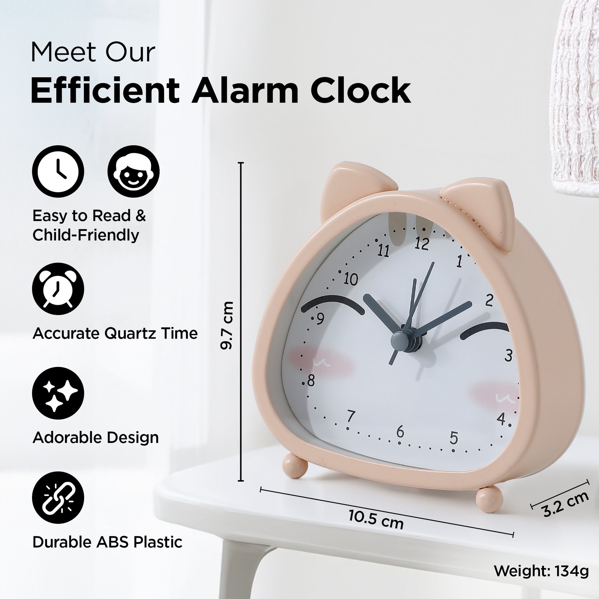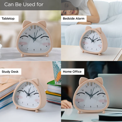Alarm Clock (10cm) |Alarm Clock for Students |Loud Alarm Clock for Heavy Sleepers |Mini Alarm Clock for Kids |Alarm Clock for Bedroom | Cat Ears Table Clock for Study Table - Light Brown