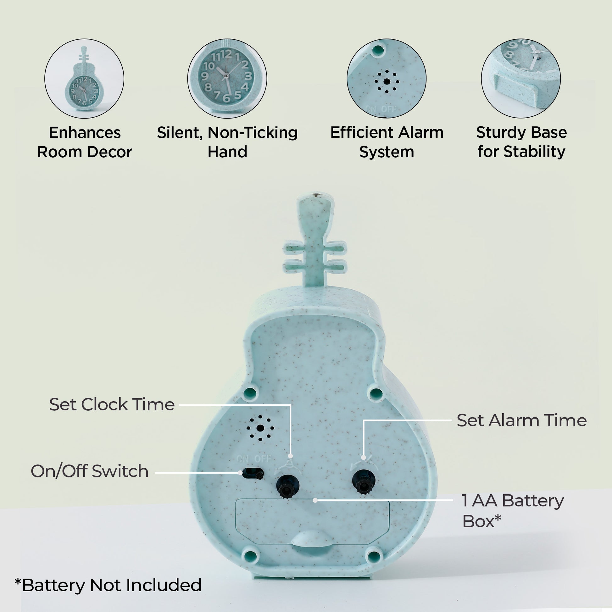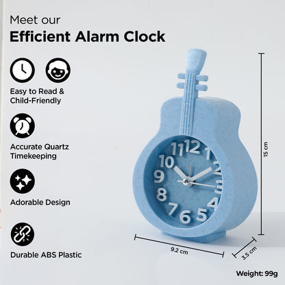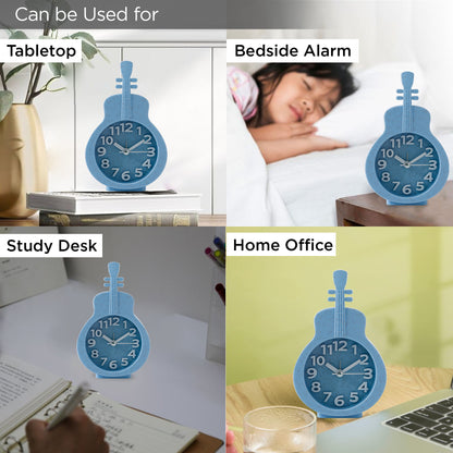 Alarm Clock (15cm) |Alarm Clock For Students |Loud Alarm Clock For Heavy Sleepers |Mini Alarm Clock For Kids |Alarm Clock For Bedroom |Table Watch|Violin Shaped Table Clock For Study Table - Blue
