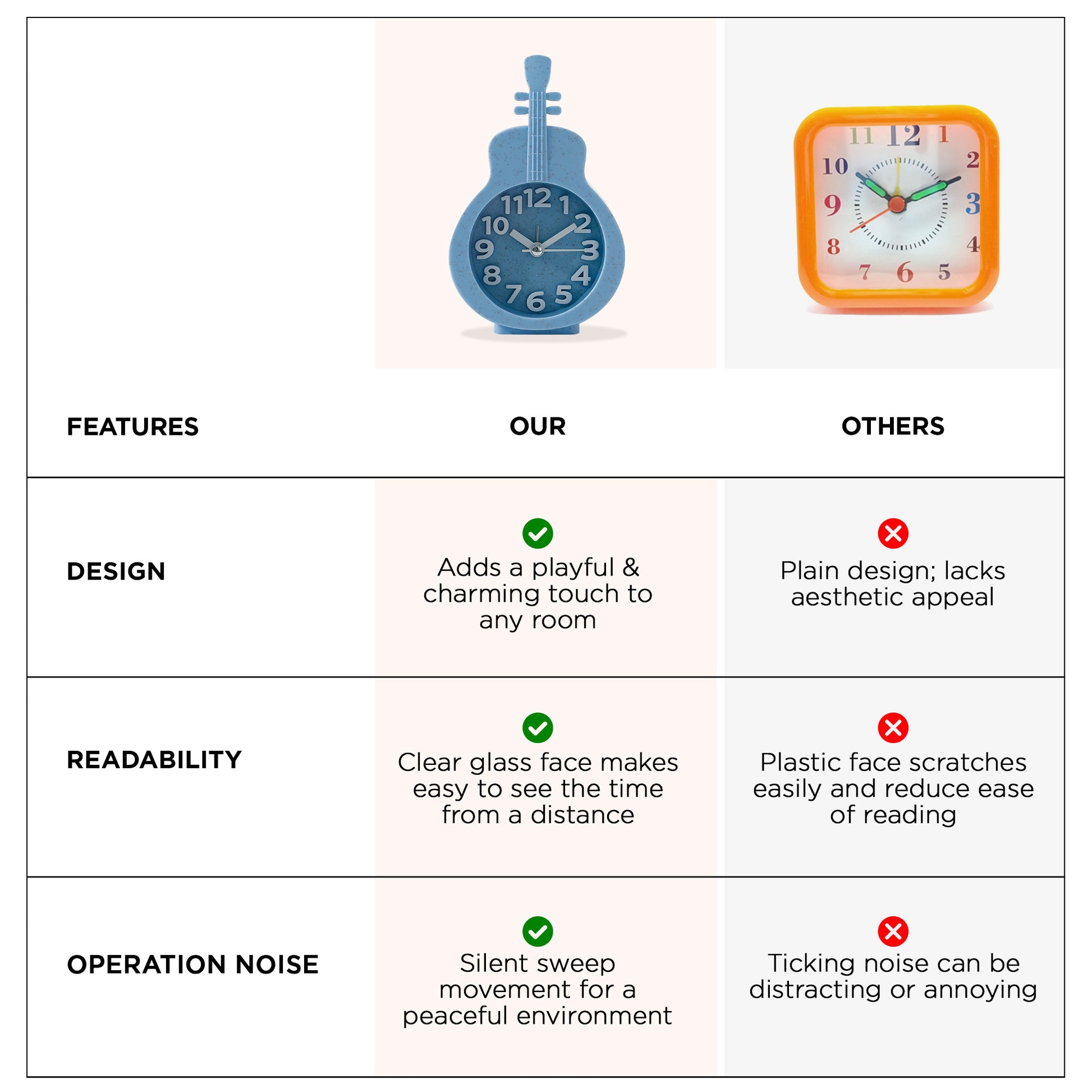 • Charming Décor: This distinctive blue alarm clock enhances your room's aesthetic, making it a delightful addition.