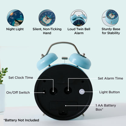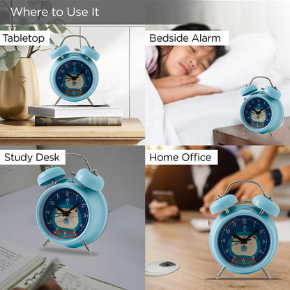Alarm Clock with Night Light(16cm) |Alarm Clock for Students |Loud Alarm Clock for Heavy Sleepers |Mini Alarm Clock for Kids |Alarm Clock for Bedroom |Twin Bell Table Clock for Study Table-Blue