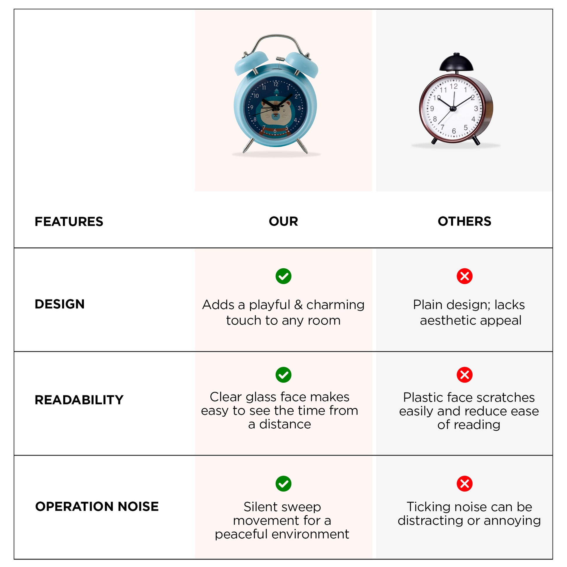 • Stylish & Sustainable: This compact twin bell clock is made from eco-friendly materials, blending seamlessly into your space.