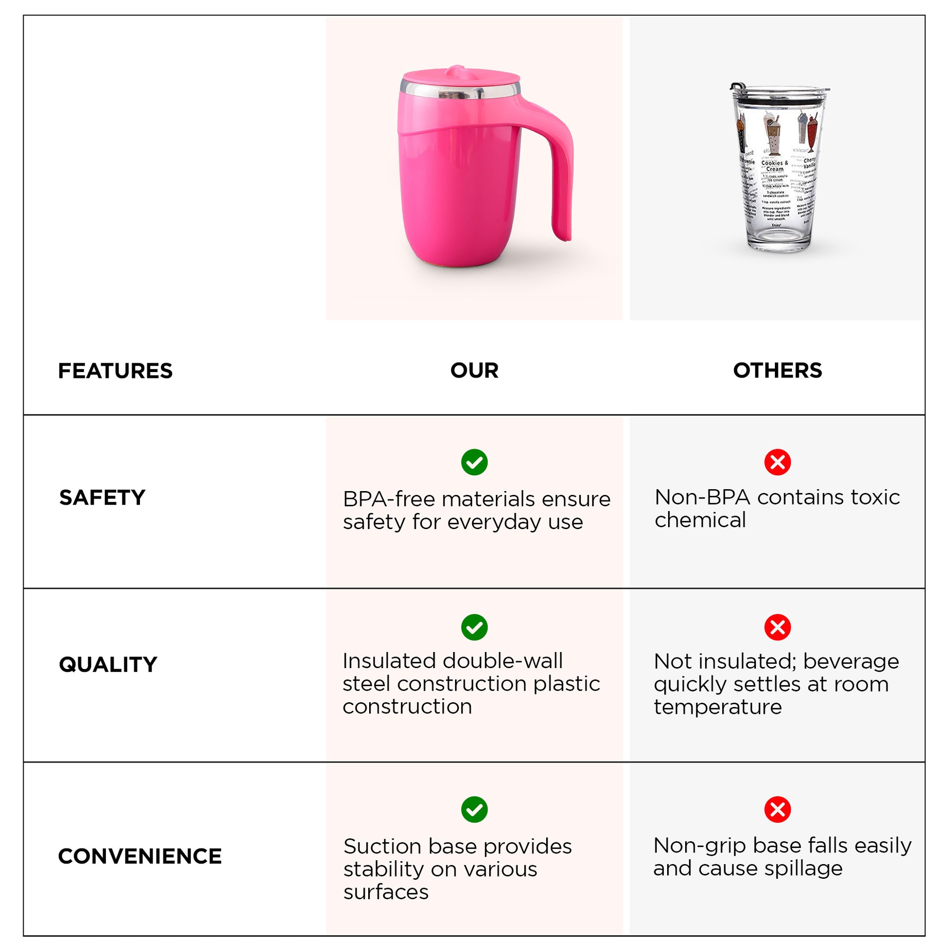 • Easy to Clean: With its easy-grip body and wide mouth, cleaning the tumbler is a breeze, allowing for hassle-free maintenance and convenience.