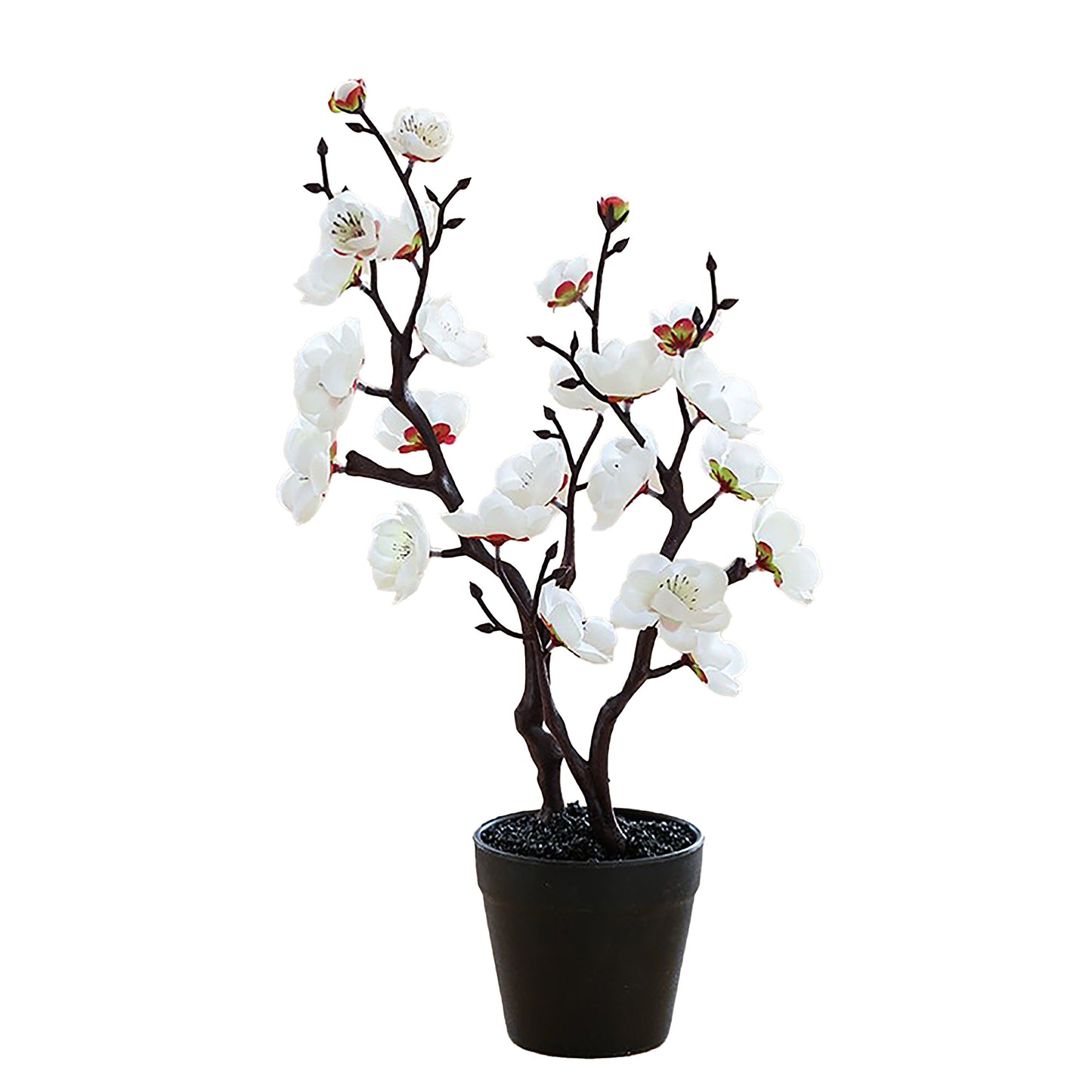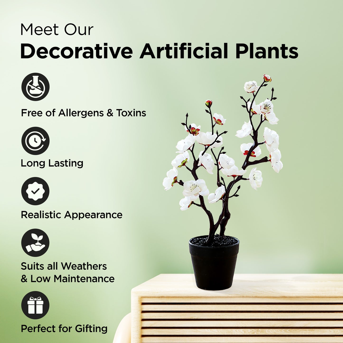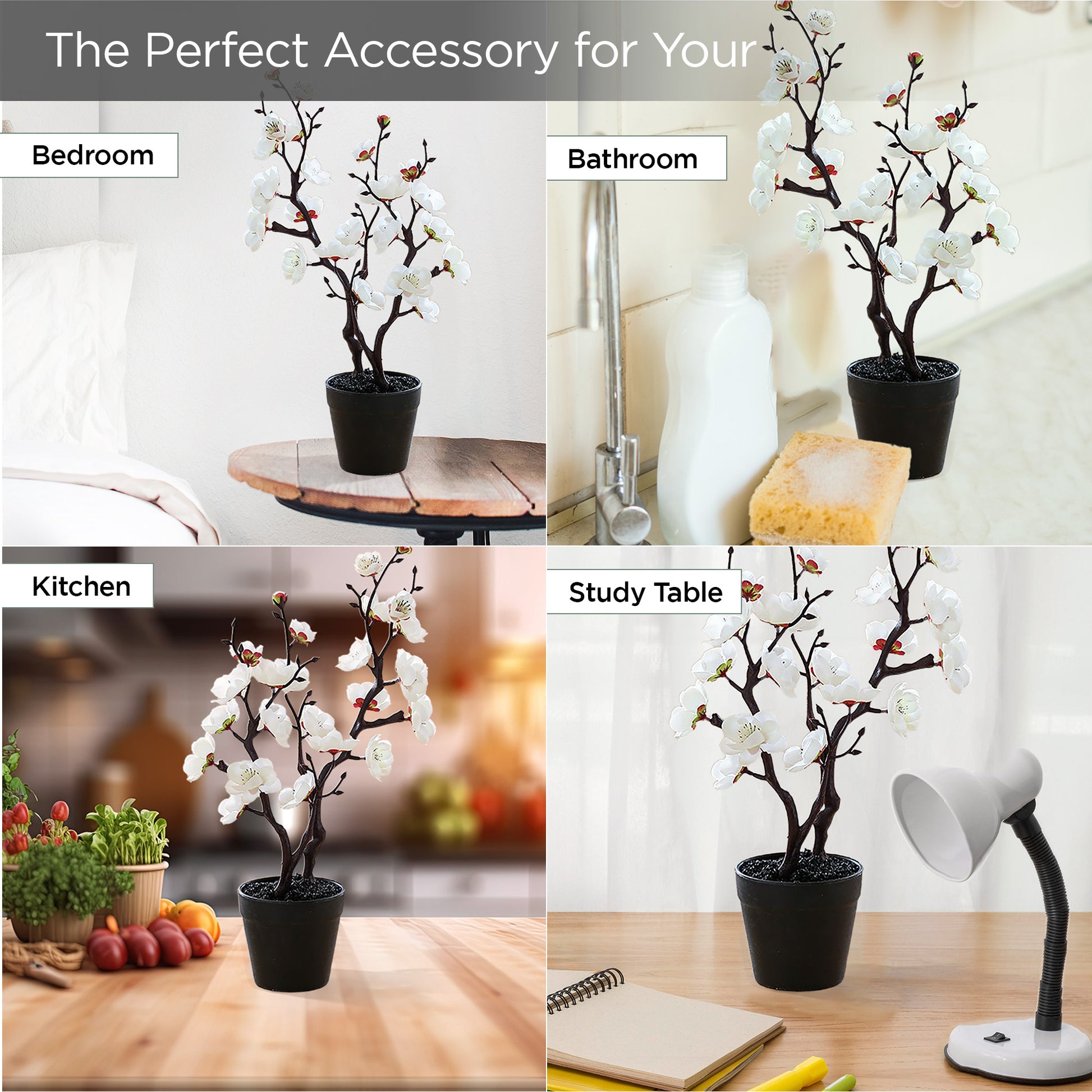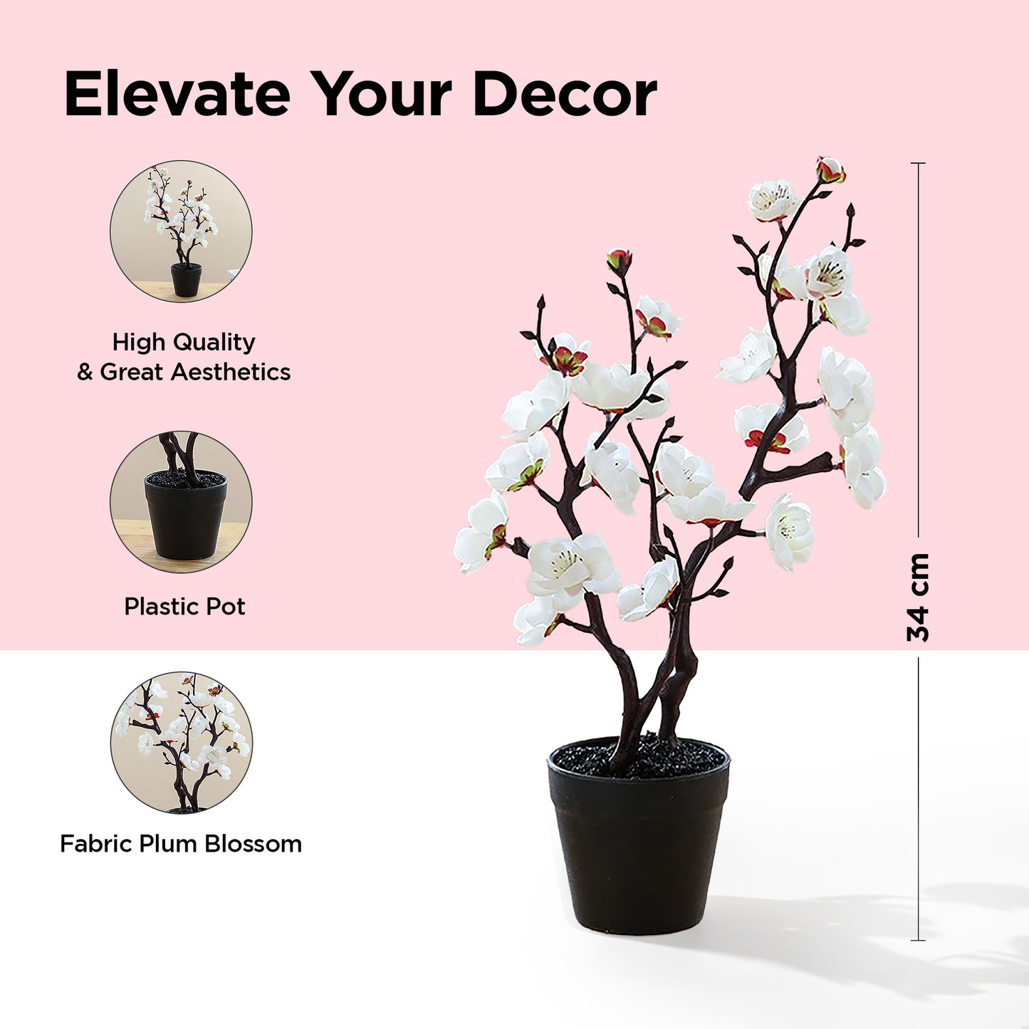 Artificial Flowers for Decoration with Pot (34cm) | White Plum Blossom Flowerpot | Aesthetic Room Decor Items for Living Room, Bedroom, Hall | Fake Plants for Office, Reception Area