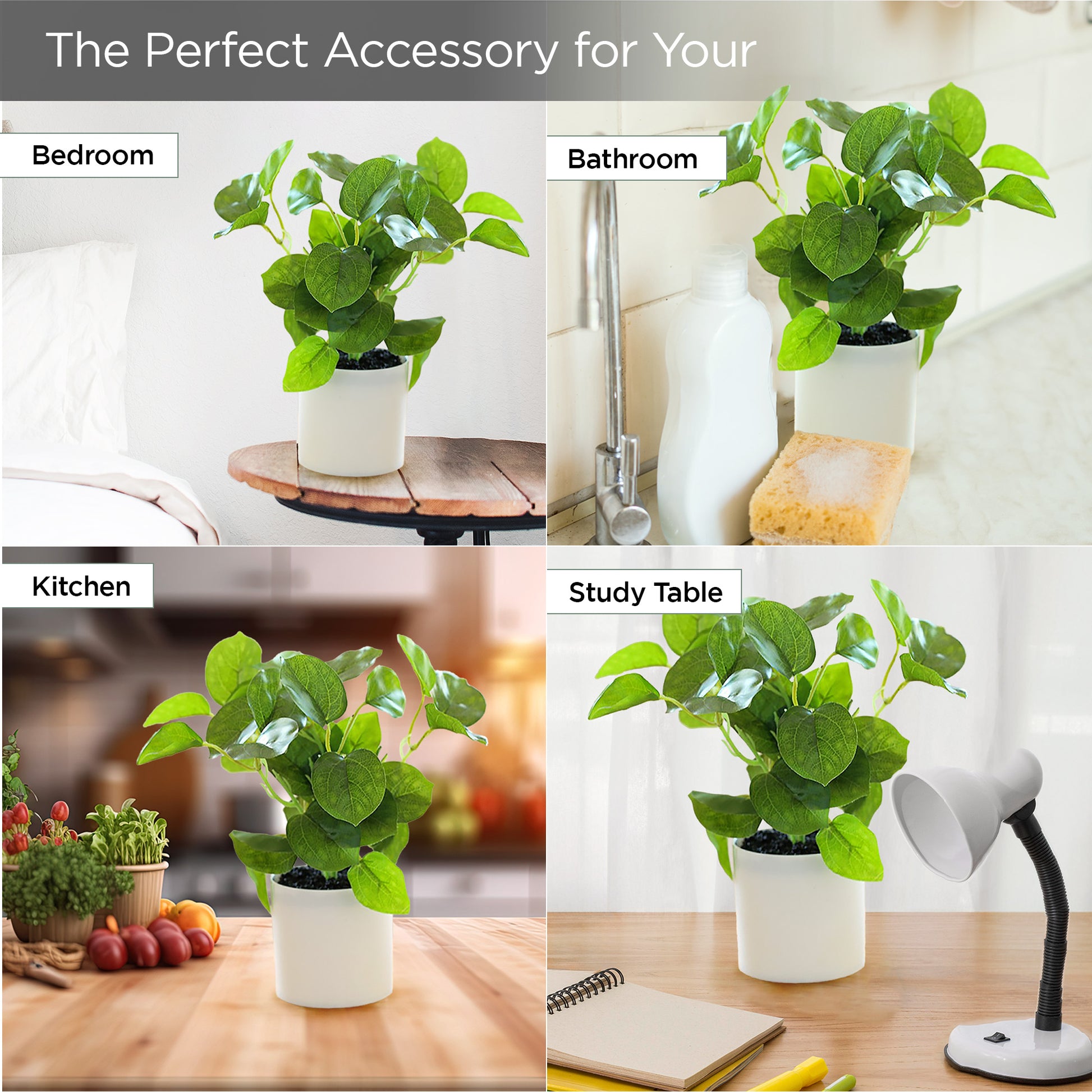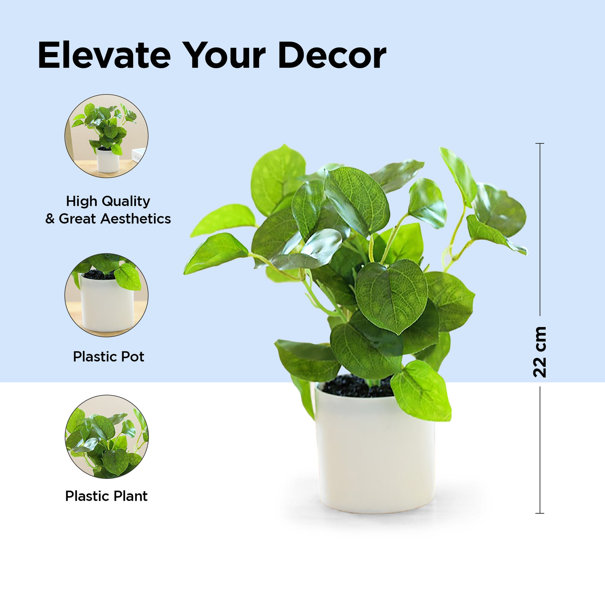 UMAI Artificial Plant with Pot 22cm Height | 18 Leaves | Plastic Home Office Decor | Bedroom Balcony Living Room Shelves | Natural Look Decoration