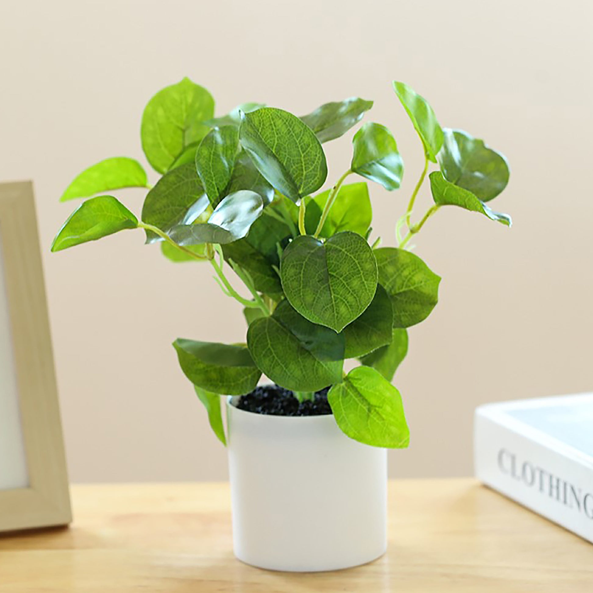Artificial Plant with Pot 22cm Height | 18 Leaves | Plastic Home Office Decor | Bedroom Balcony Living Room Shelves | Natural Look Decoration