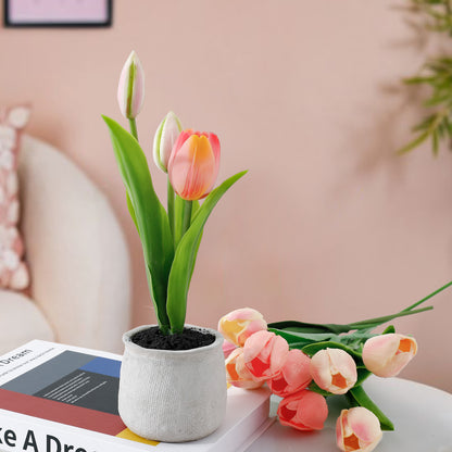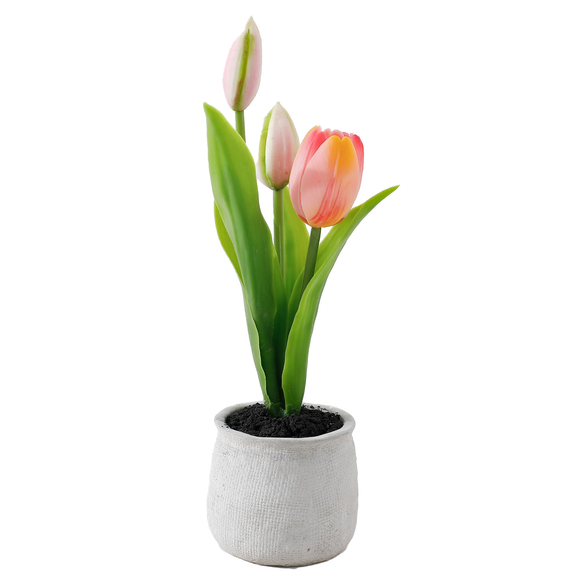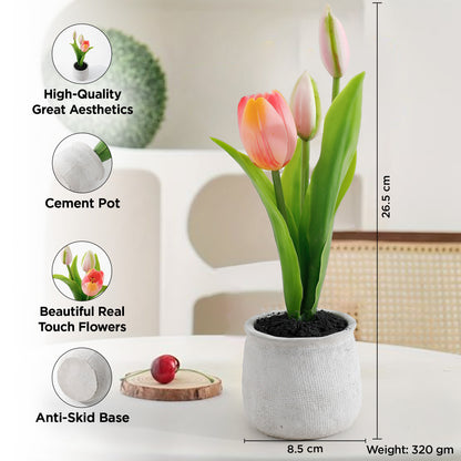 Artificial Plants for Home Decor Items with Pot (26CM) Aesthetic Room Decor Items for Bedroom| Office Table Accessories| Pink Tulip Flowers Artificial| Living Room Decorative Items for Home