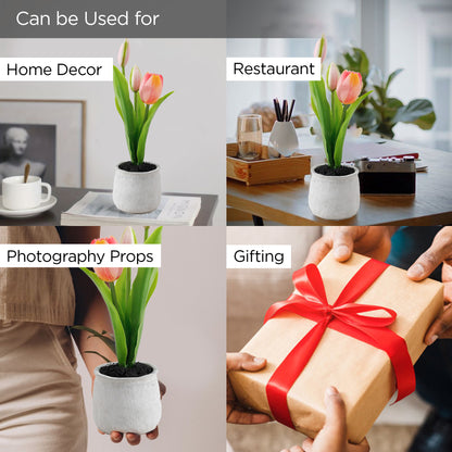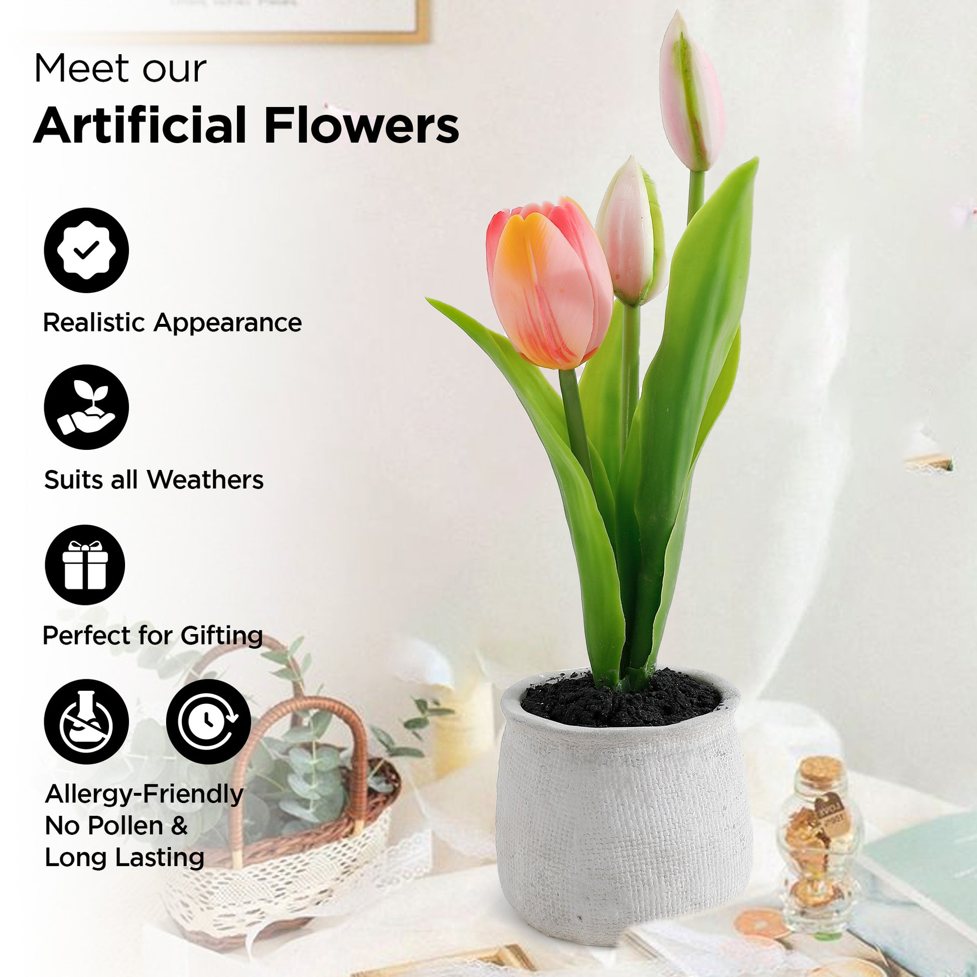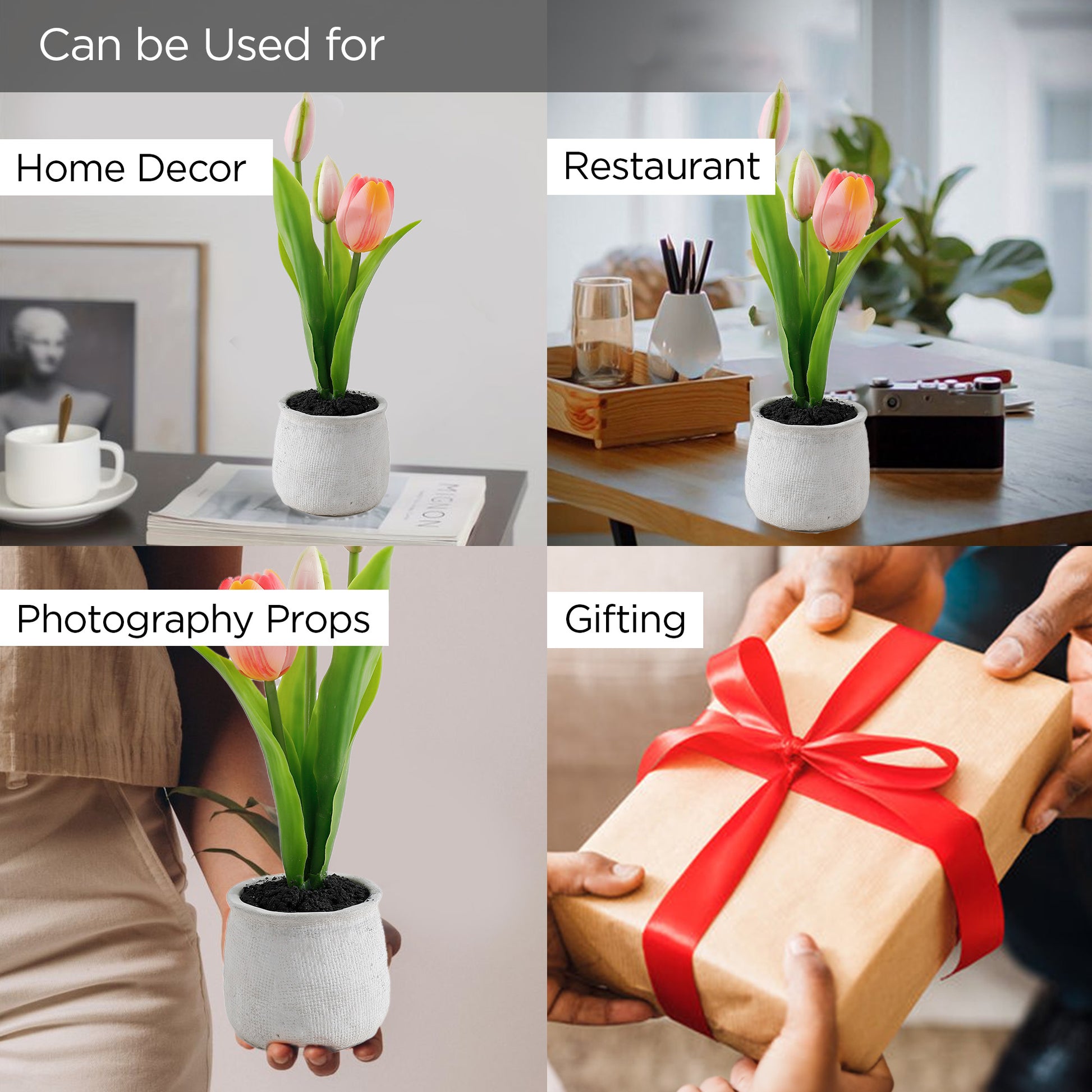UMAI Artificial Plants for Home Decor Items with Pot (26CM) Aesthetic Room Decor Items for Bedroom| Office Table Accessories| Pink Tulip Flowers Artificial| Living Room Decorative Items for Home