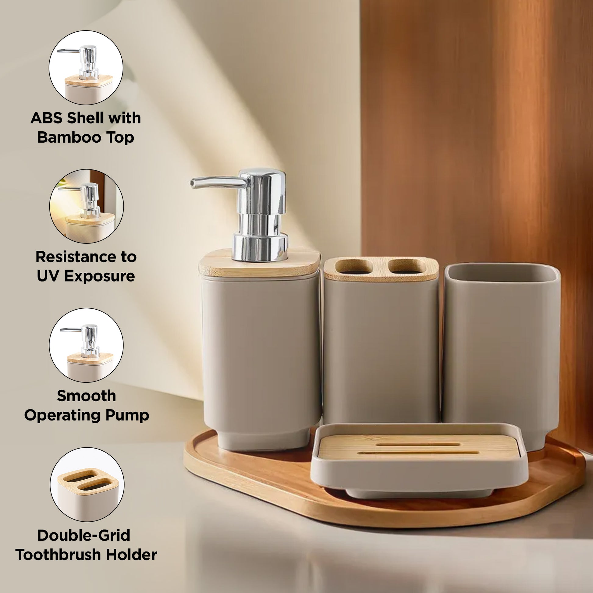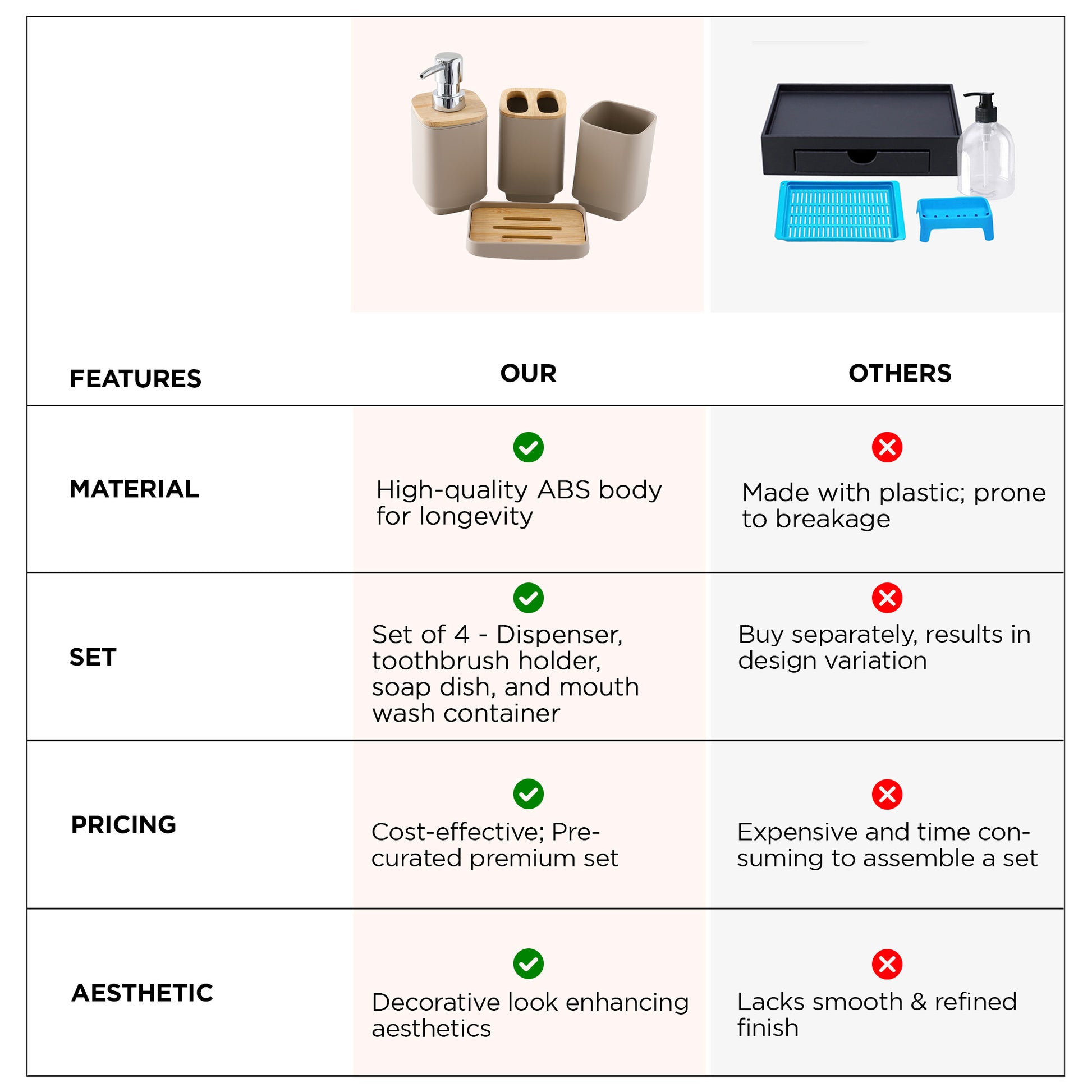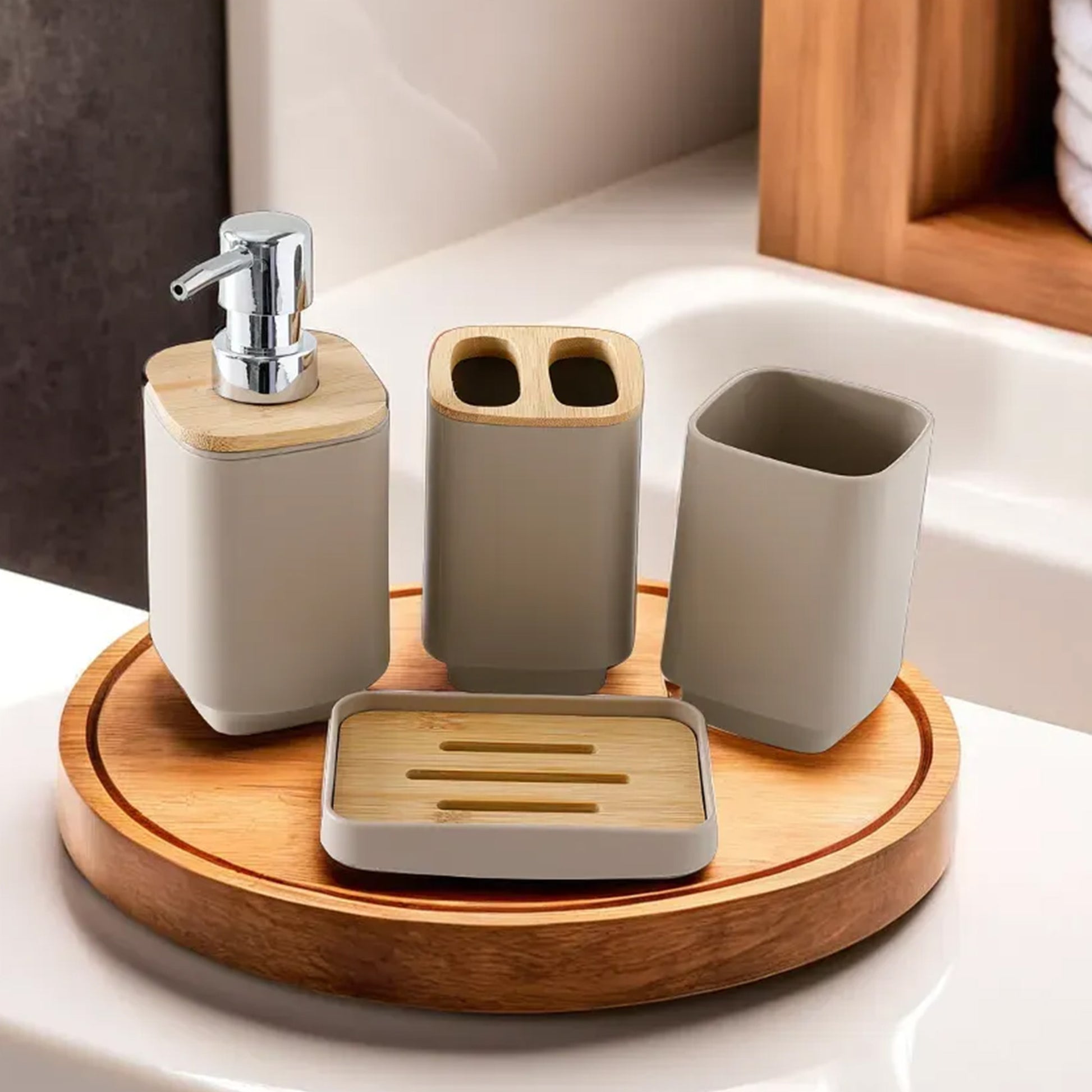 Transform your bathroom into a stylish and organized sanctuary with the UMAI Bathroom Accessories Set, a complete collection of four essential pieces designed to elevate your daily routine.