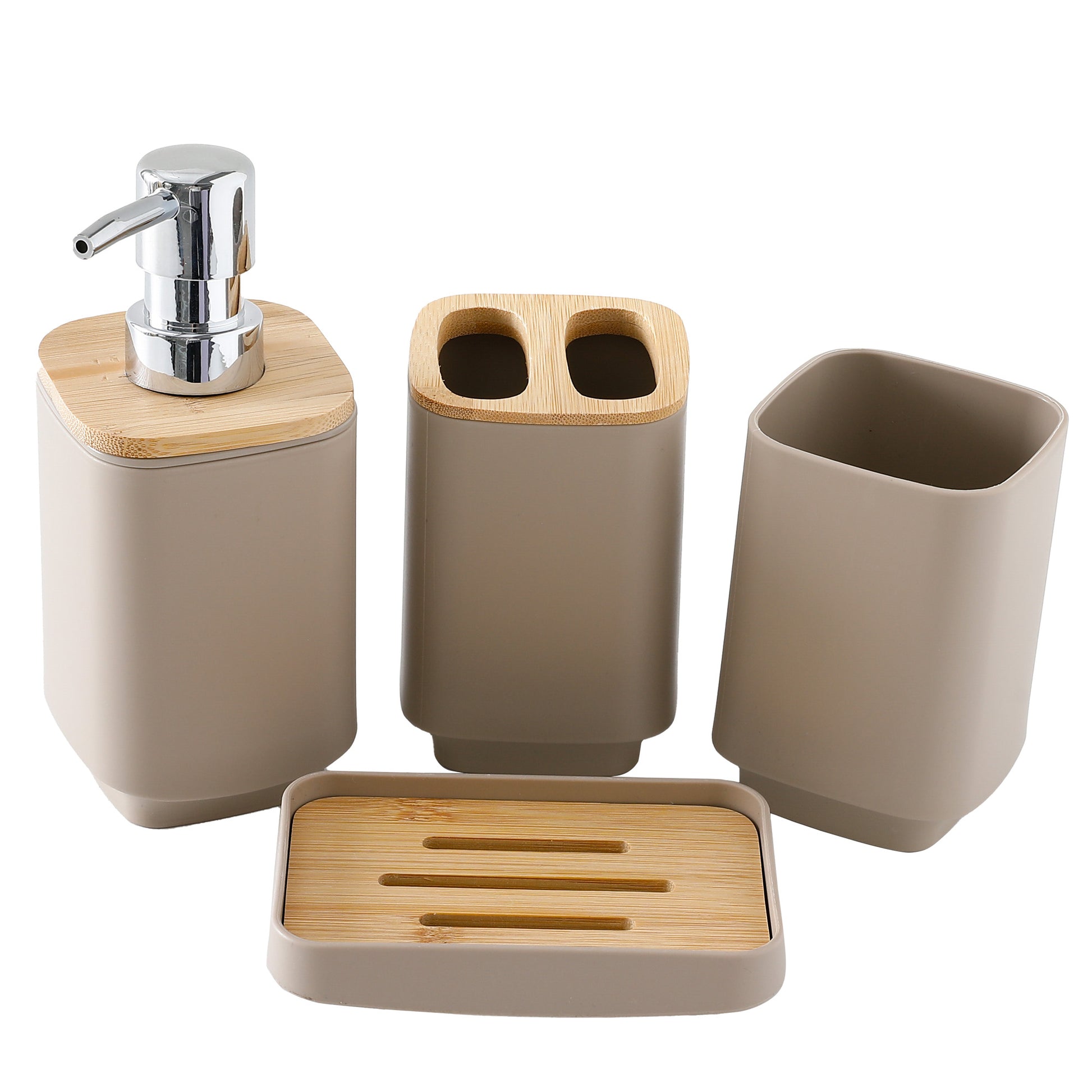 • Complete 4-Piece Set: Each set includes a soap dispenser (7 * 7 * 17 cm), toothbrush holder, soap case, and mouthwash cup, all crafted for sleek functionality.