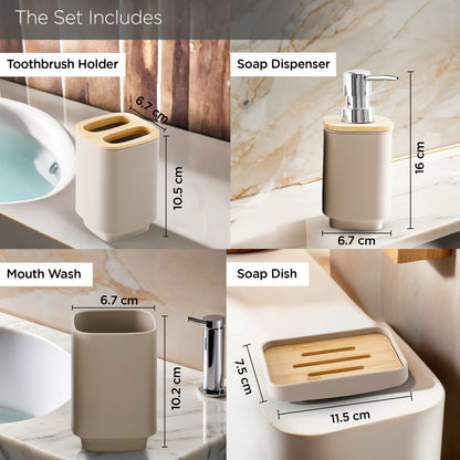 UMAI Bathroom Accessories Set of 4 Pcs | Soap Dispenser for Bathroom(7 * 7 * 17cm) | Toothbrush Holder | Soap Case for Bathroom | Mouth Wash Cup Bathroom Accessories Items
