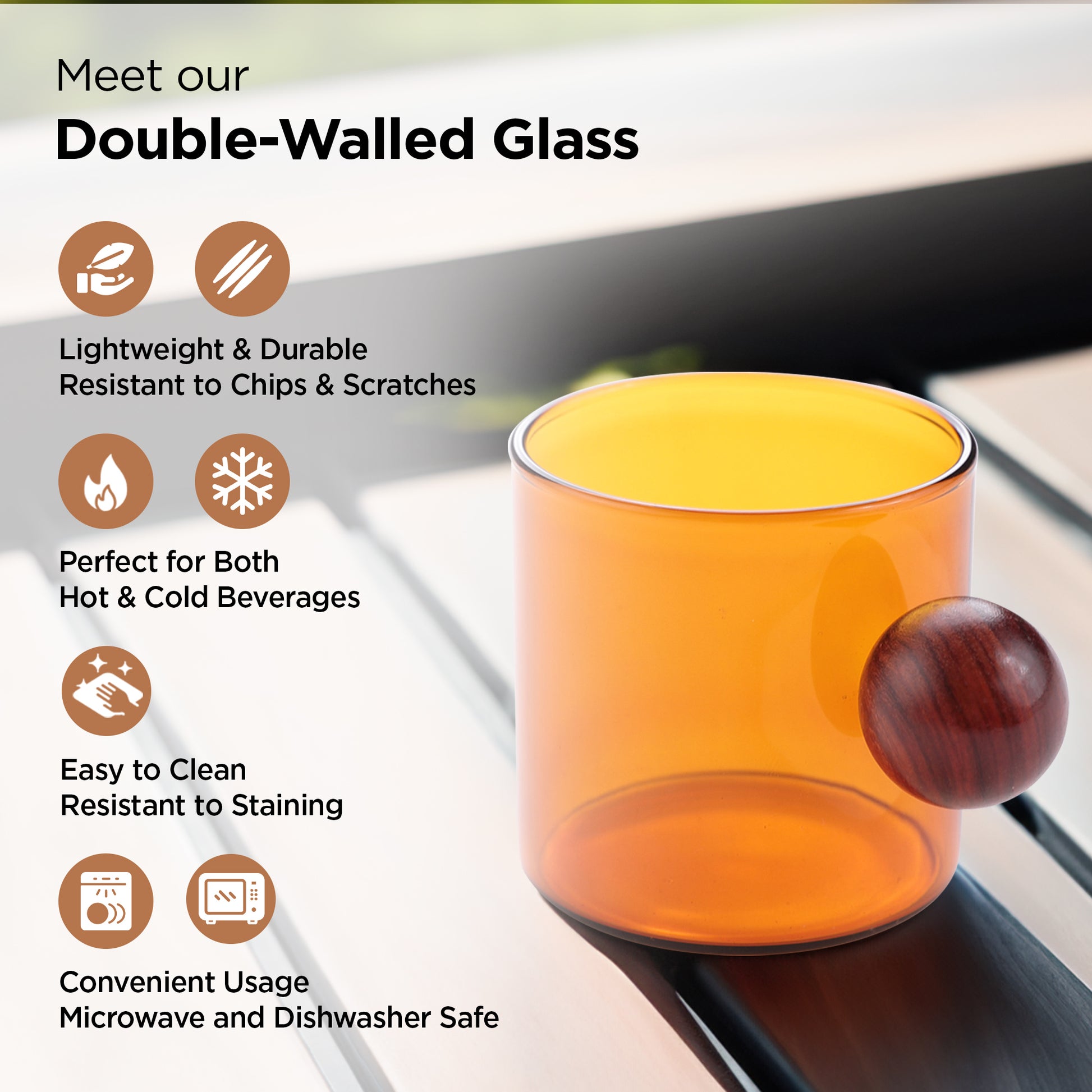 Double Walled Glass Mug Set of 2: Borosilicate Teacups | 400ml | Green