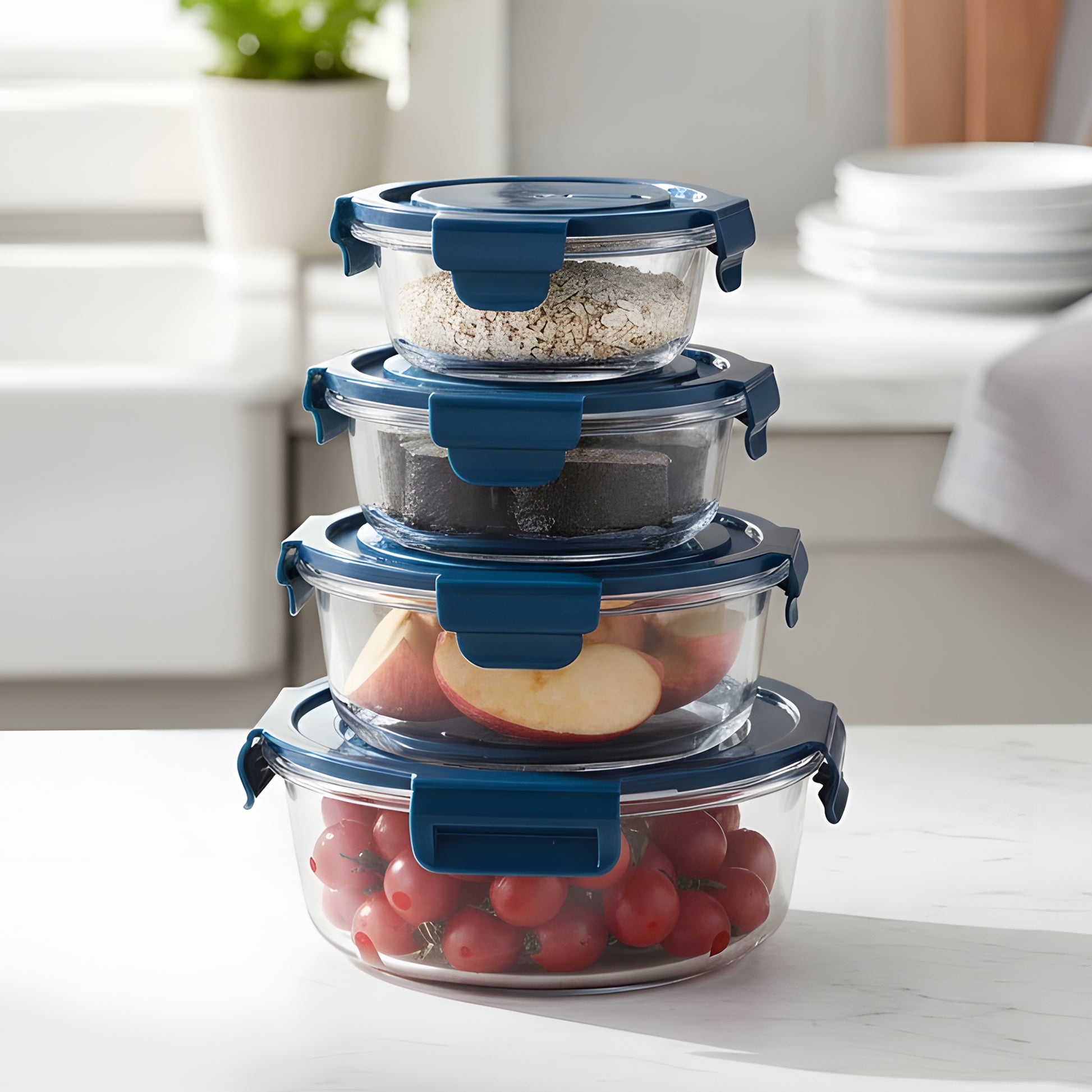 • Stackable Design: Save valuable kitchen space with stackable containers that keep your cabinets and refrigerator organized and clutter-free.