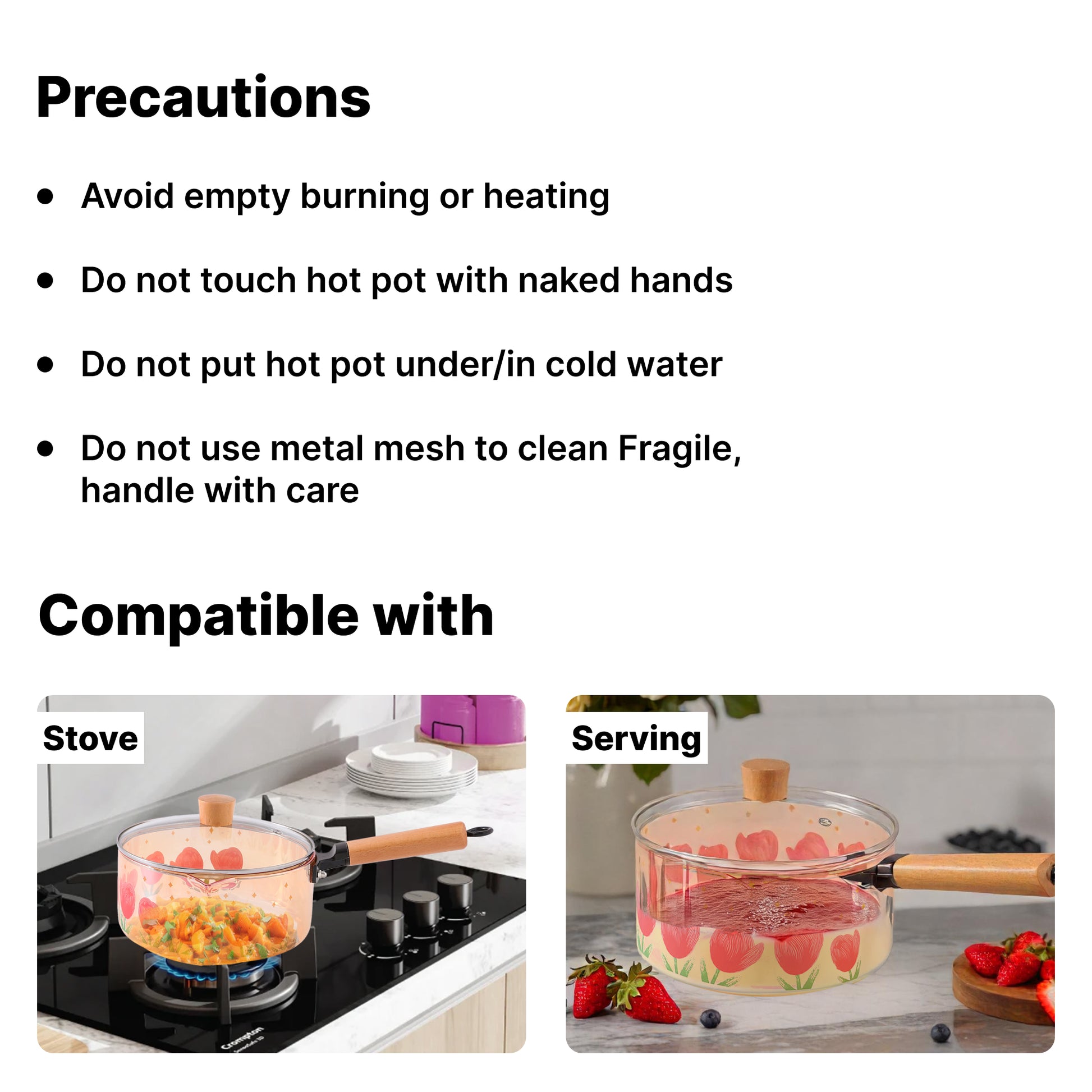 • Crystal-clear cooking: 2.2L borosilicate glass body & tempered glass lid for easy monitoring.