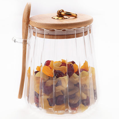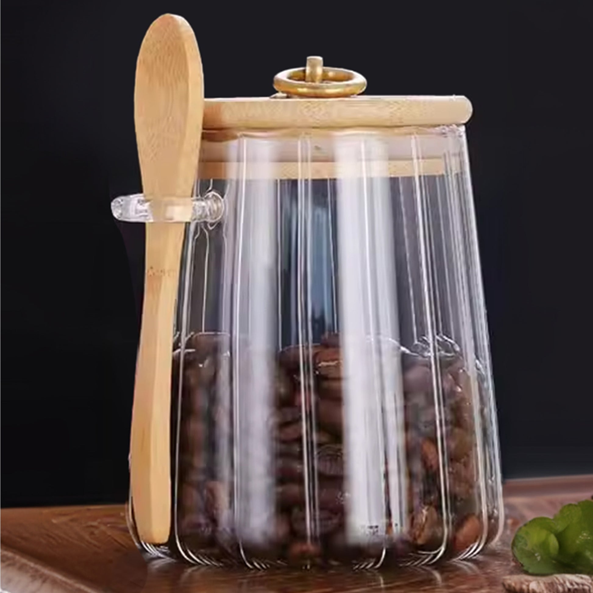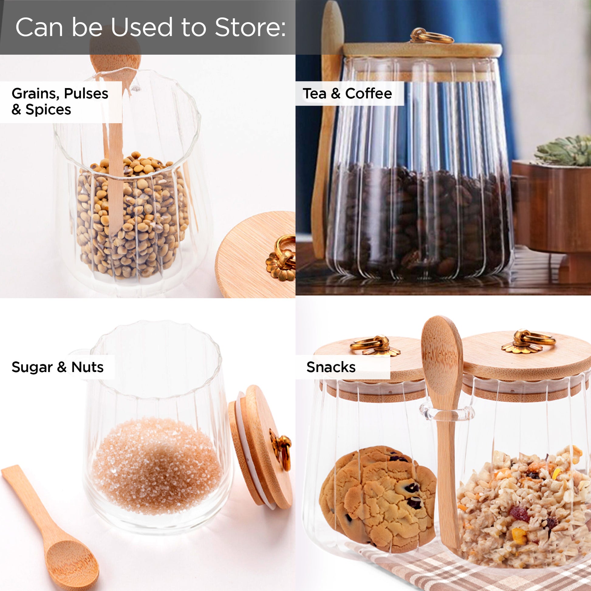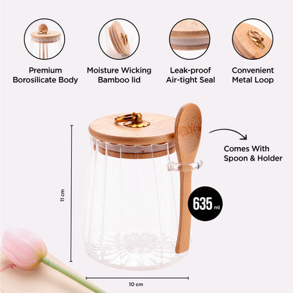 Borosilicate Glass Jar with Bamboo Lid & Spoon - Airtight, Leakproof | 635ml | Kitchen Organizer