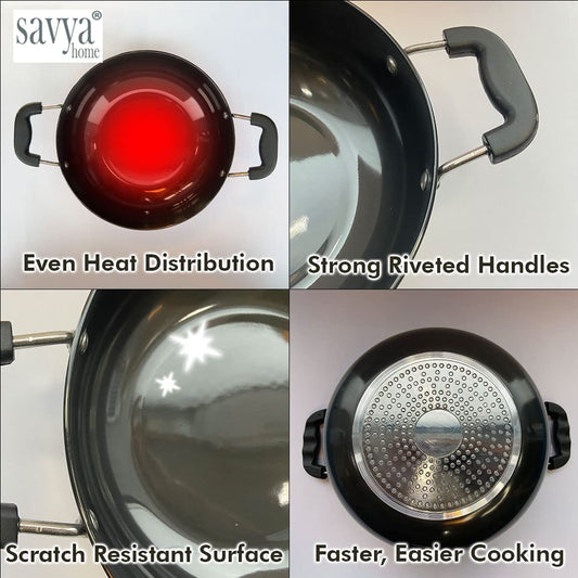 Hard Anodised Aluminium Kadai with Lid for Cooking | 26 cm Diameter | Gas & Induction Cookware | Black
