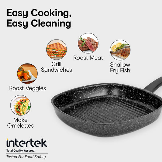 32CM Stone Grey Grill Pan: Non-Stick Aluminium Cookware | 1 Pc