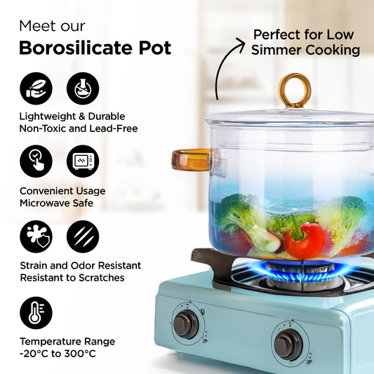 Borosilicate Glass 2.3L Saucepan with Lid - Microwave & Gas Stove Safe | Transparent