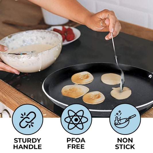 Non Stick Dosa Tawa (28cm- 3mm Thickness)| Gas & Induction Cookware | 3 Layer Nonstick Coating |Granite Tawa For Roti | Fish Fry Tawa | Dosa Tava Roti | Tava Pan Non Stick | Flat Tawa