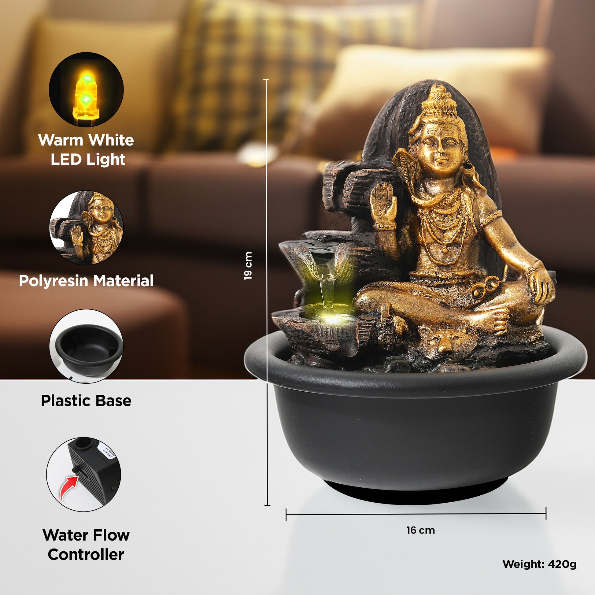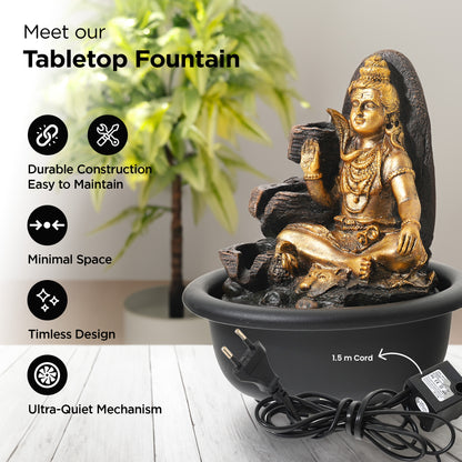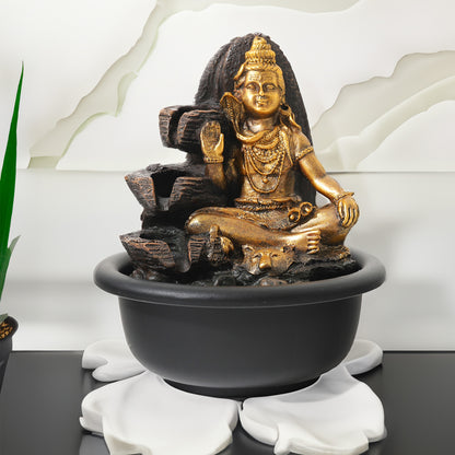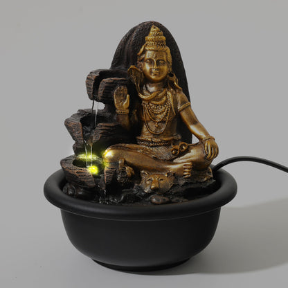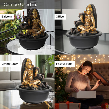 Buddha Idol Water Fountain for Home Decor (19cm) LED Lights | Waterfall Fountains for Living Room, Garden, Office, Reception,Tabletop | Home Decor Items (Shiva Idol Fountain)