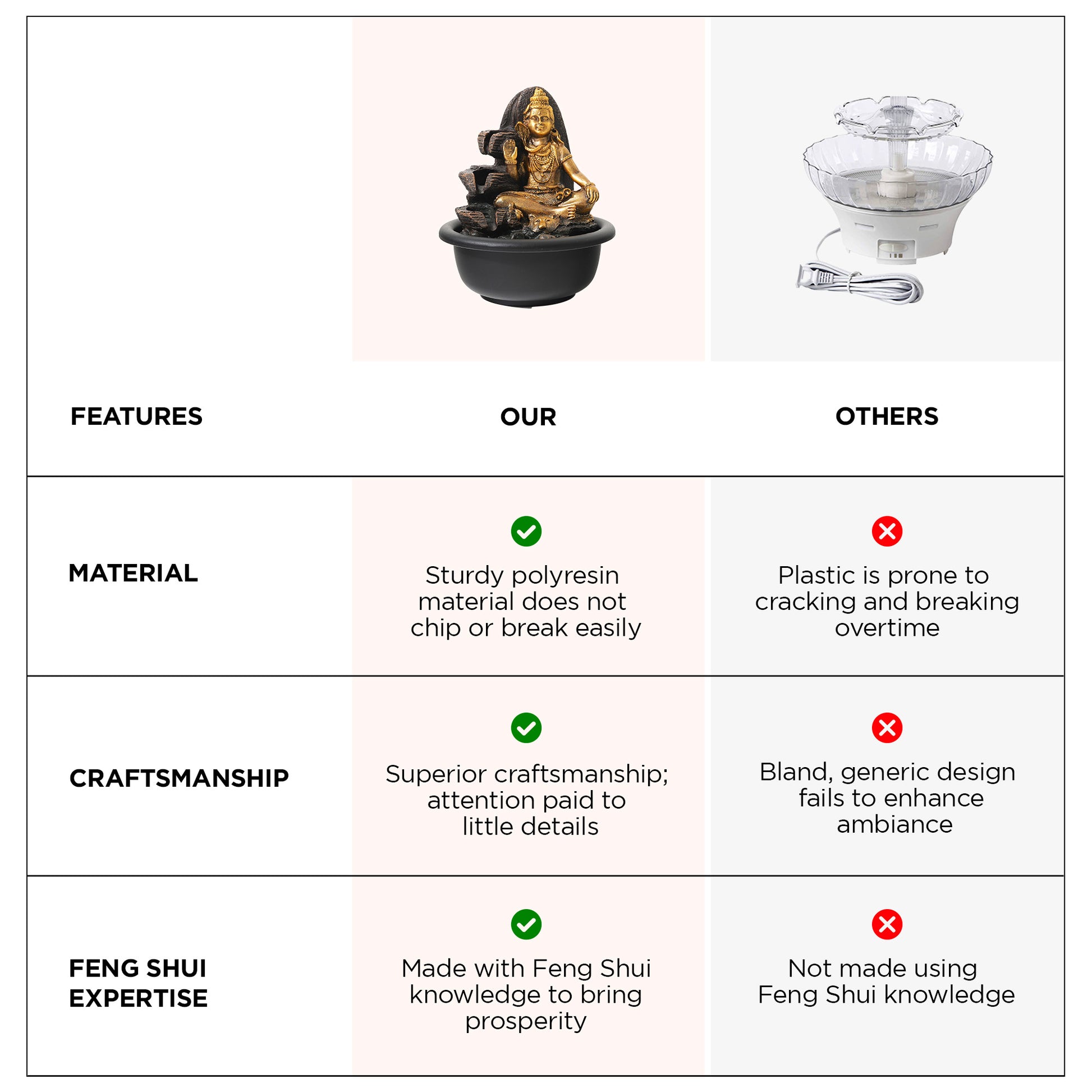 • Soothing Sounds: Enjoy the gentle cascade of water, creating a relaxing atmosphere that soothes the mind and spirit.