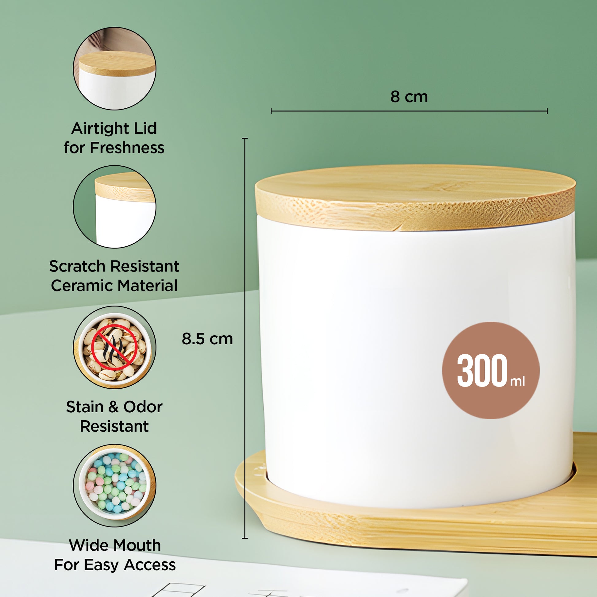 UMAI Ceramic Jar For Kitchen Storage With Bamboo Lid | Airtight Kitchen Container For Storage | Multipurpose Jar For Pickle Dry Fruits Nuts | BPA Free | 300ml | White |