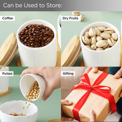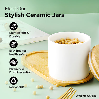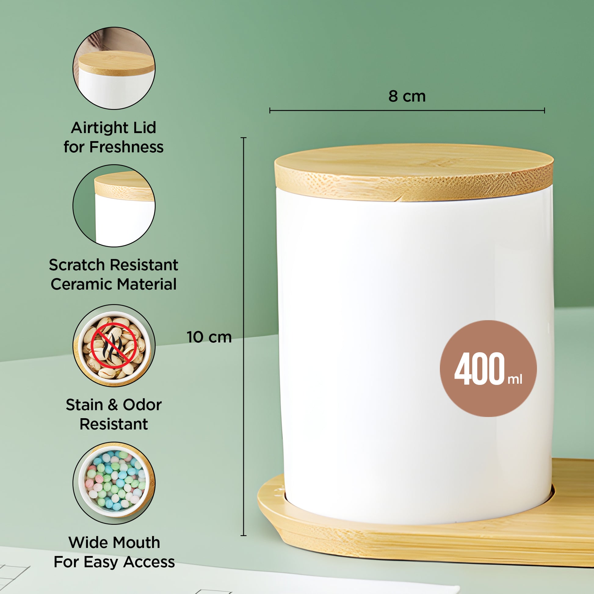UMAI Ceramic Jar Kitchen Storage With Bamboo Lid | Kitchen Accessories Items | Airtight Kitchen Container For Storage | Multipurpose Jar For Pickle Dry Fruits Nuts | White | 400ML | BPA Free