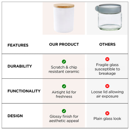 • Exceptional Freshness: Made from high-quality ceramic, this jar is paired with an airtight bamboo lid that locks in flavor and aroma, ensuring lasting freshness for your stored items.