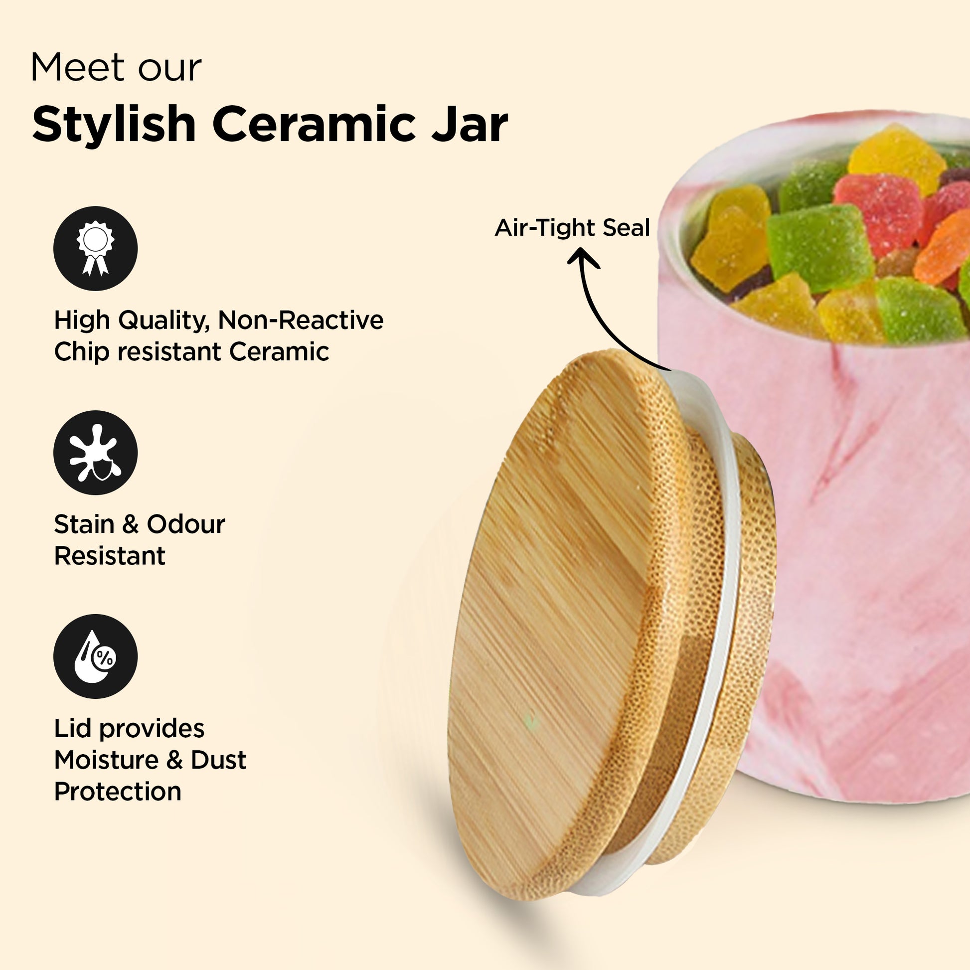 • High Quality Ceramic Material: Crafted from premium ceramic, this jar is both durable and eco-friendly. Unlike plastic containers, our ceramic jar is non-reactive, ensuring your food remains safe and free from harmful chemicals.