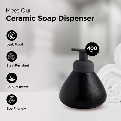 UMAI Ceramic Soap Dispenser - Scratch Proof, Leakproof | 360ml | Blue | Stylish Bathroom Decor