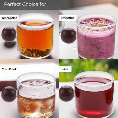 Introducing the Borosilicate Glass Coffee Mug with Wooden Handle by UMAI, your ultimate companion for daily brews! This set of 2 mugs, each with a 120ml capacity, is crafted with precision and designed for versatility. Made from high-quality borosilicate glass, these mugs offer exceptional durability and high heat resistance, allowing you to enjoy both hot drinks and cold refreshments without worry.